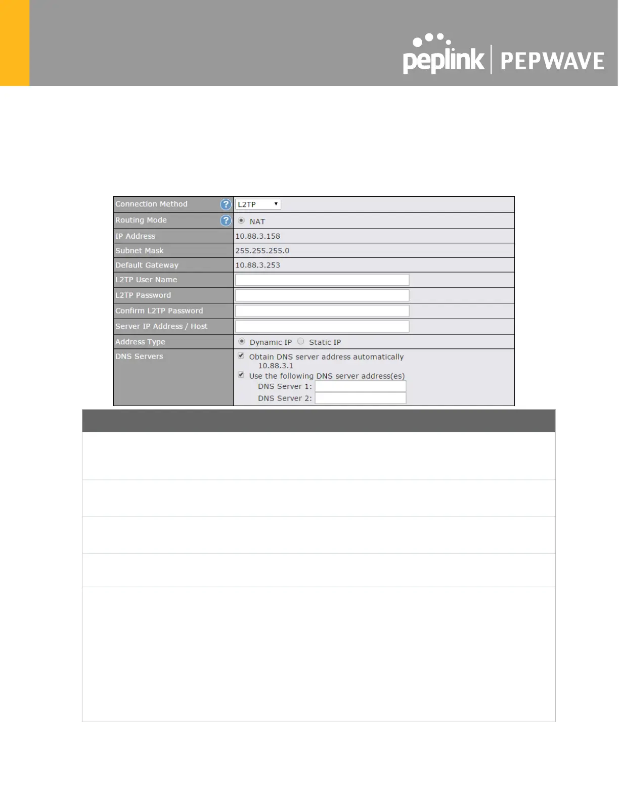 Enter the required information in these fields in order to connect via L2TP to your