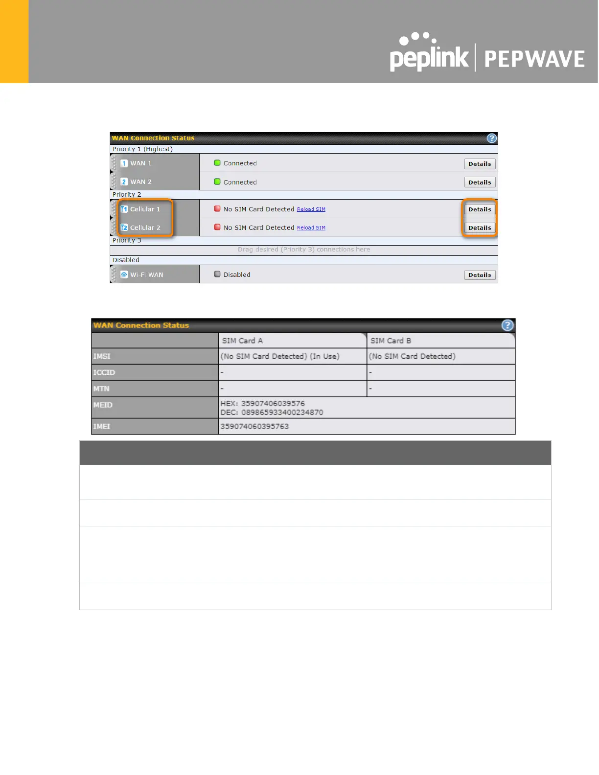 To access cellular WAN settings, click Network>WAN>Details.