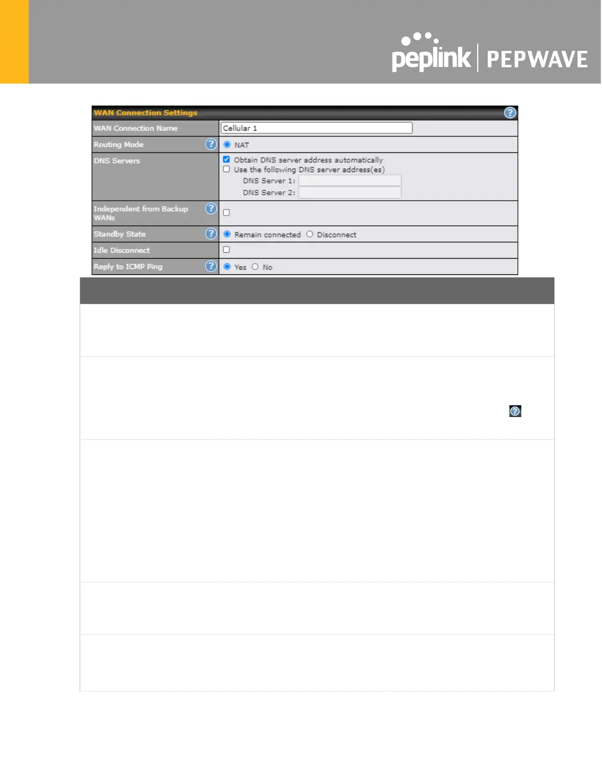 state. When Remain connected is chosen, bringing up this WAN connection to