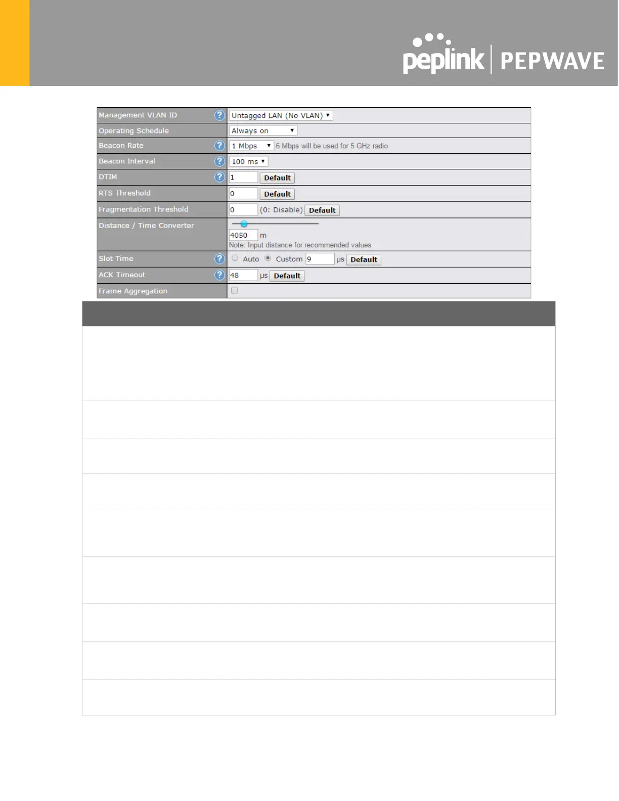 recommendations for the Slot Time and ACK Timeout.