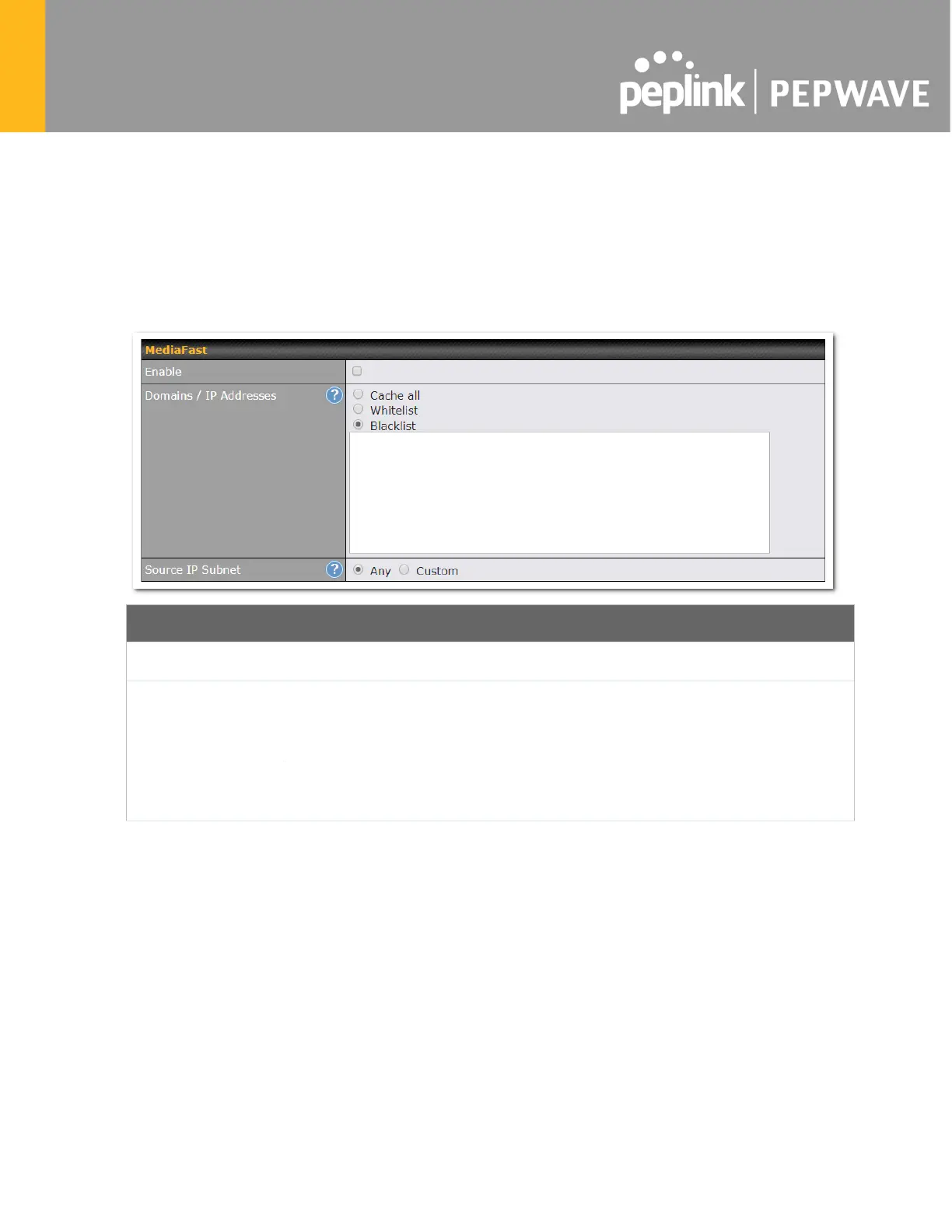 either Whitelist (cache the specified domains only) or Blacklist (do not cache