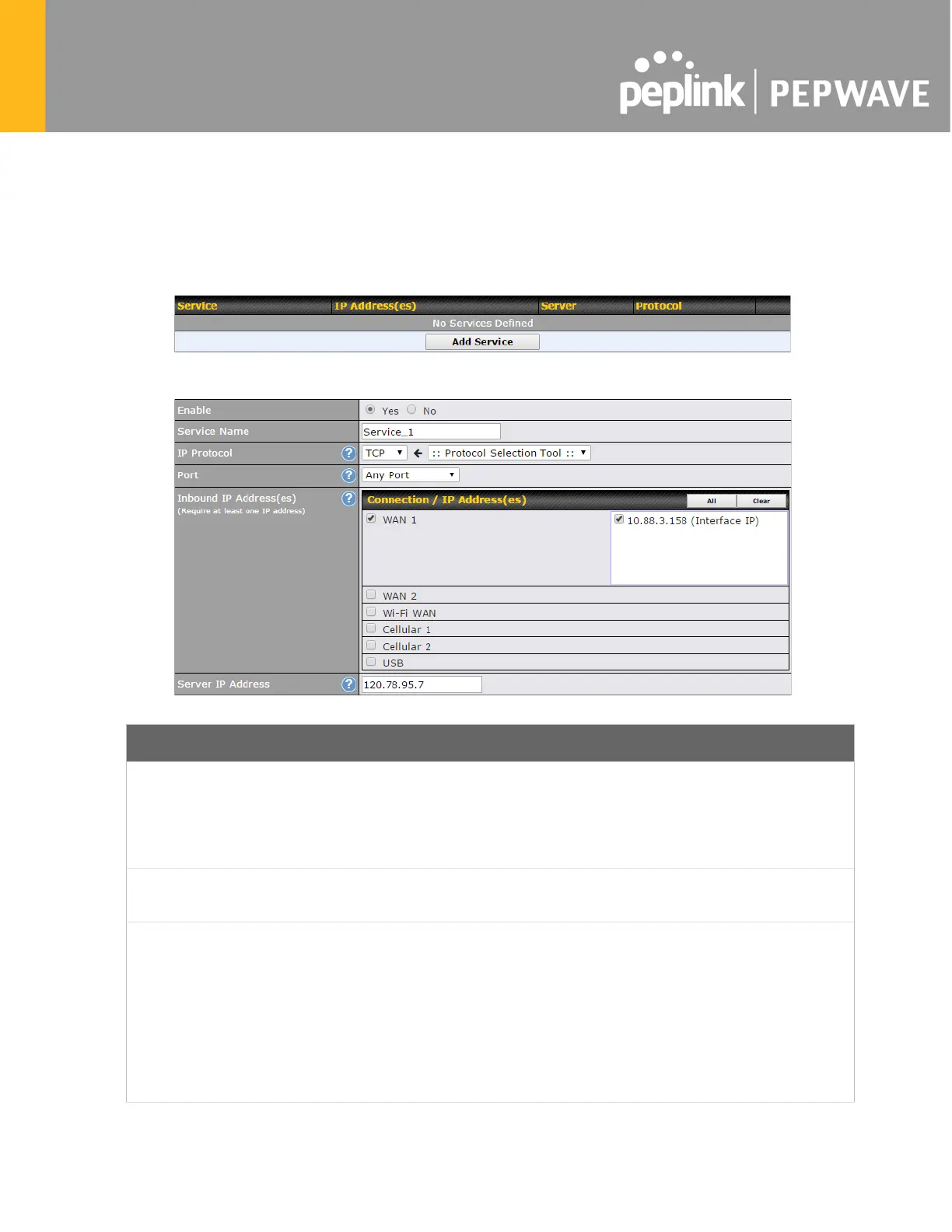 disabled, the inbound service does not take effect: the Pepwave router disregards the
