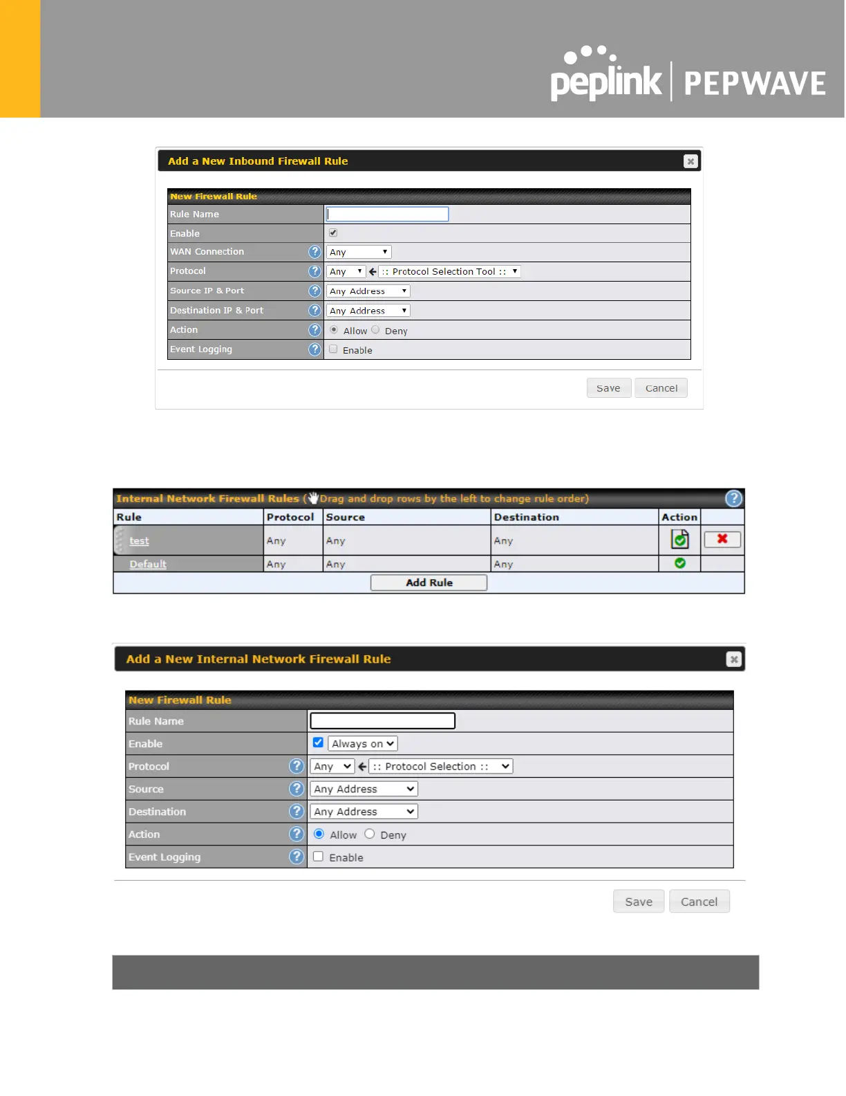 Internal Network firewall settings are located at Advanced>Firewall>Access Rules>Internal