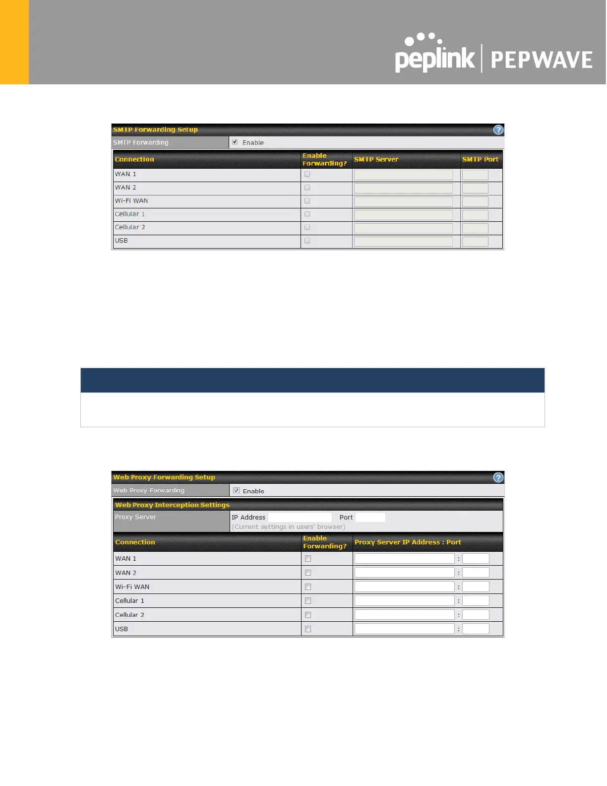 When this feature is enabled, the Pepwave router will intercept all outgoing connections