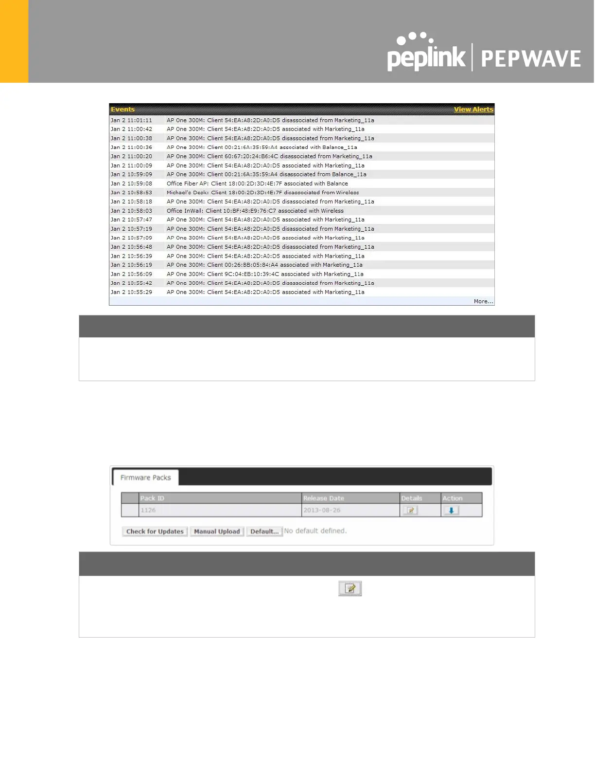 This event log displays all activity on your AP network, down to the client level. Use to filter box to search
