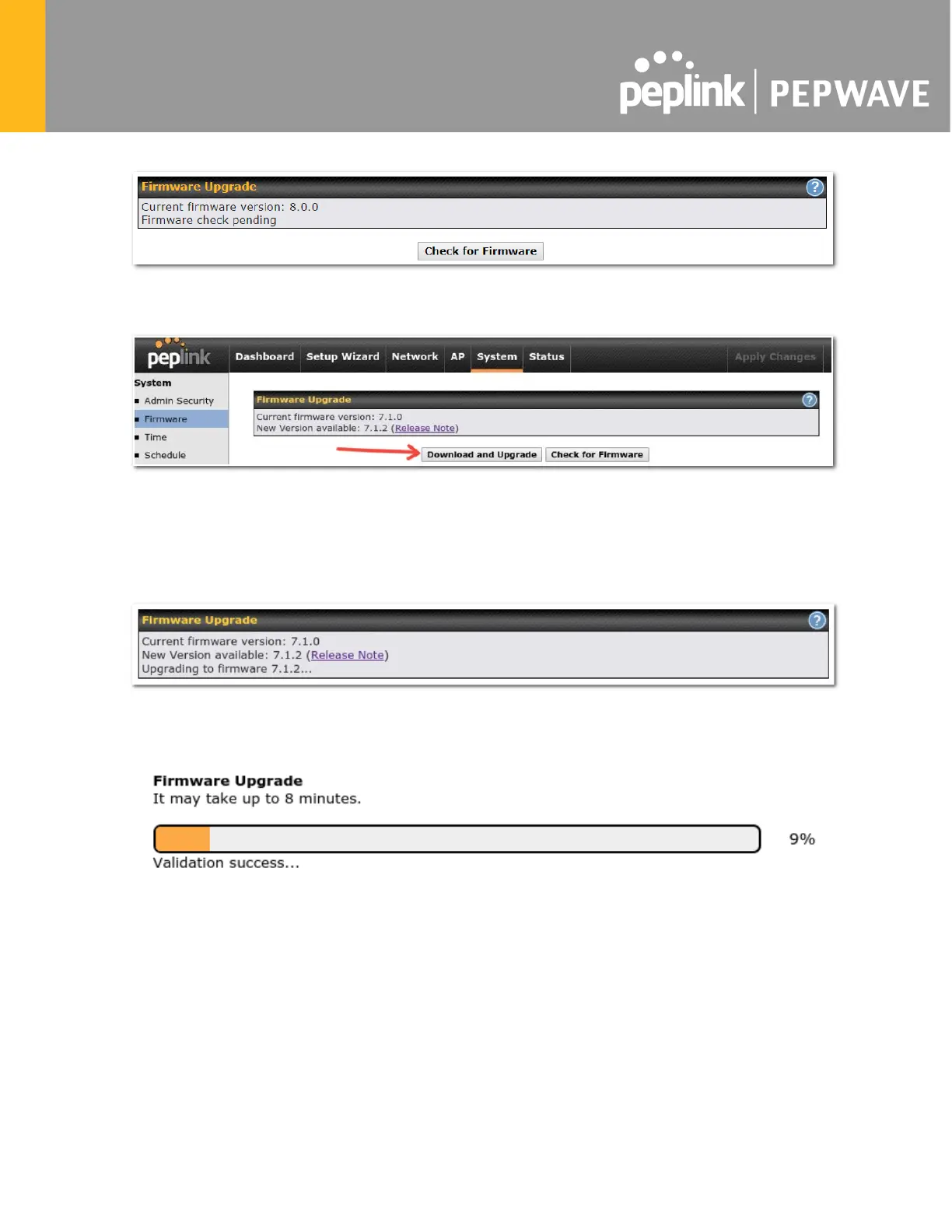 The router will download and then apply the firmware. The time that this process takes will