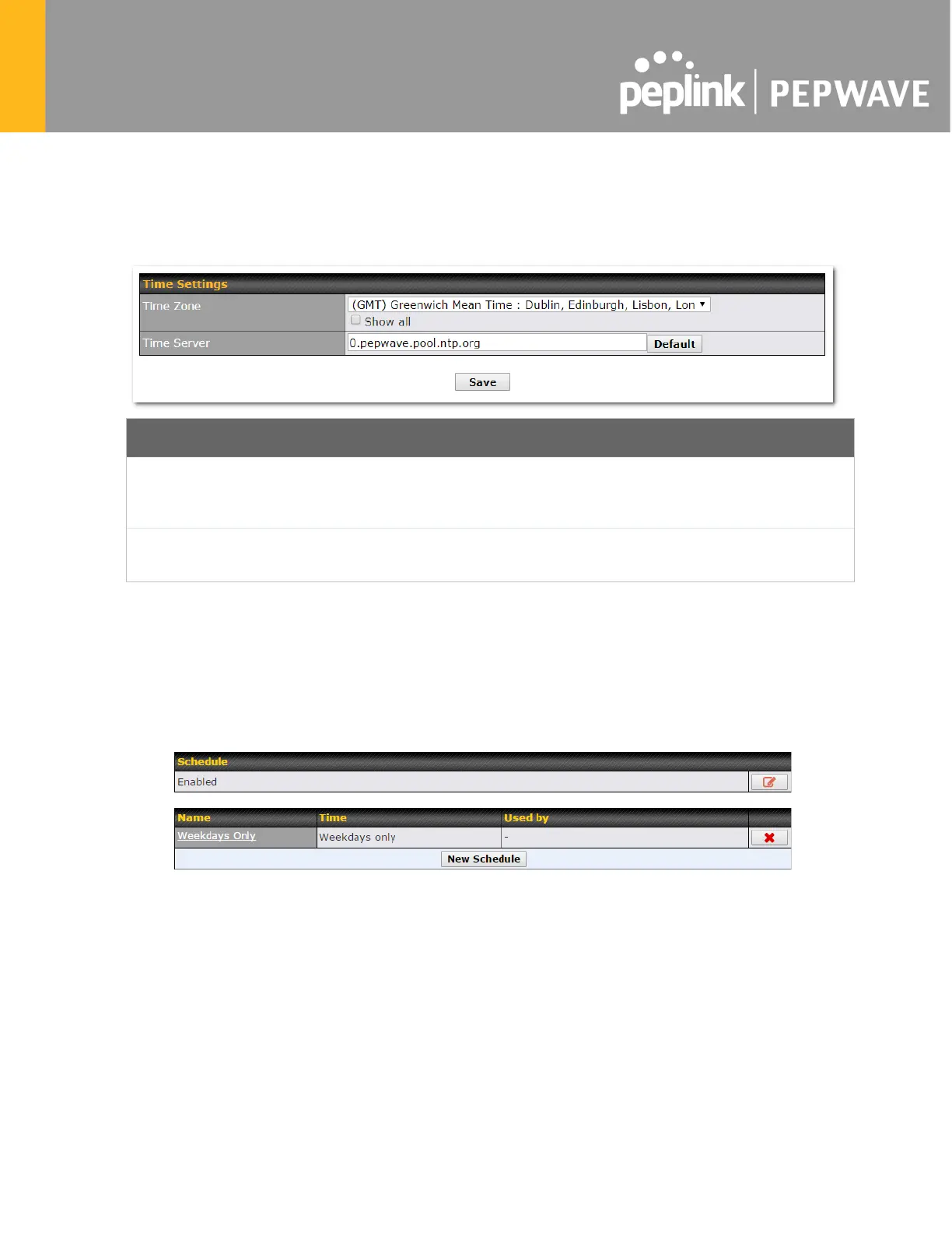 Time Settings enables the system clock of the Pepwave router to be synchronized with a