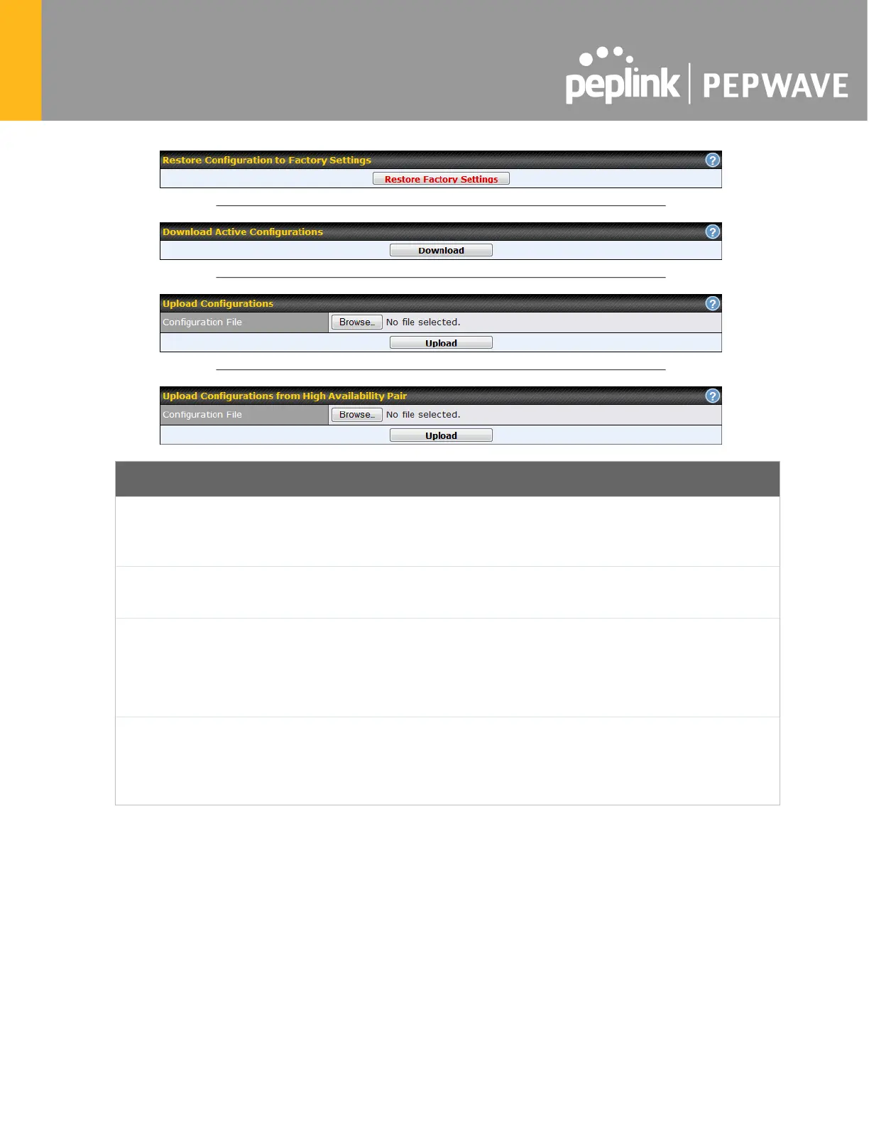In a high availability (HA) configuration, a Pepwave router can quickly load the