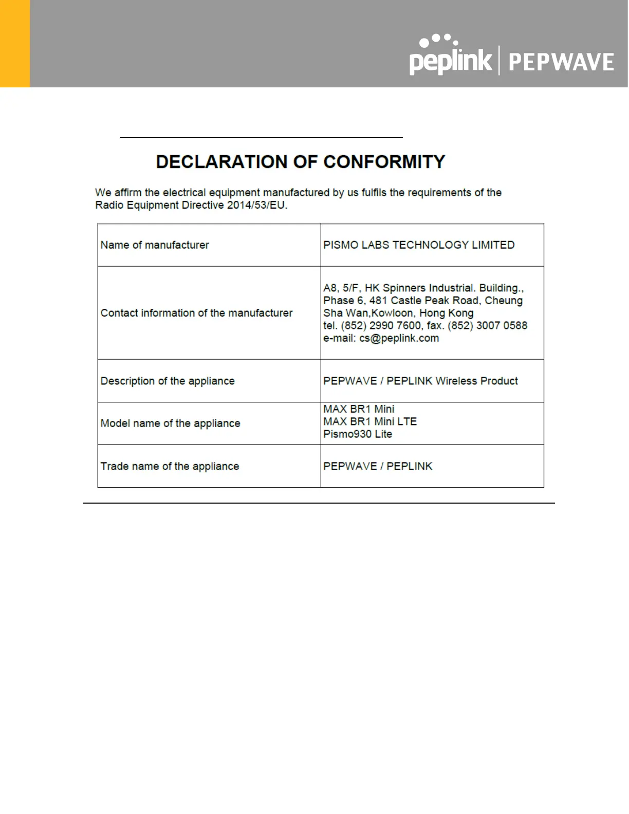 1. CE Statement for Pepwave Routers ( MAX BR1 Mini )