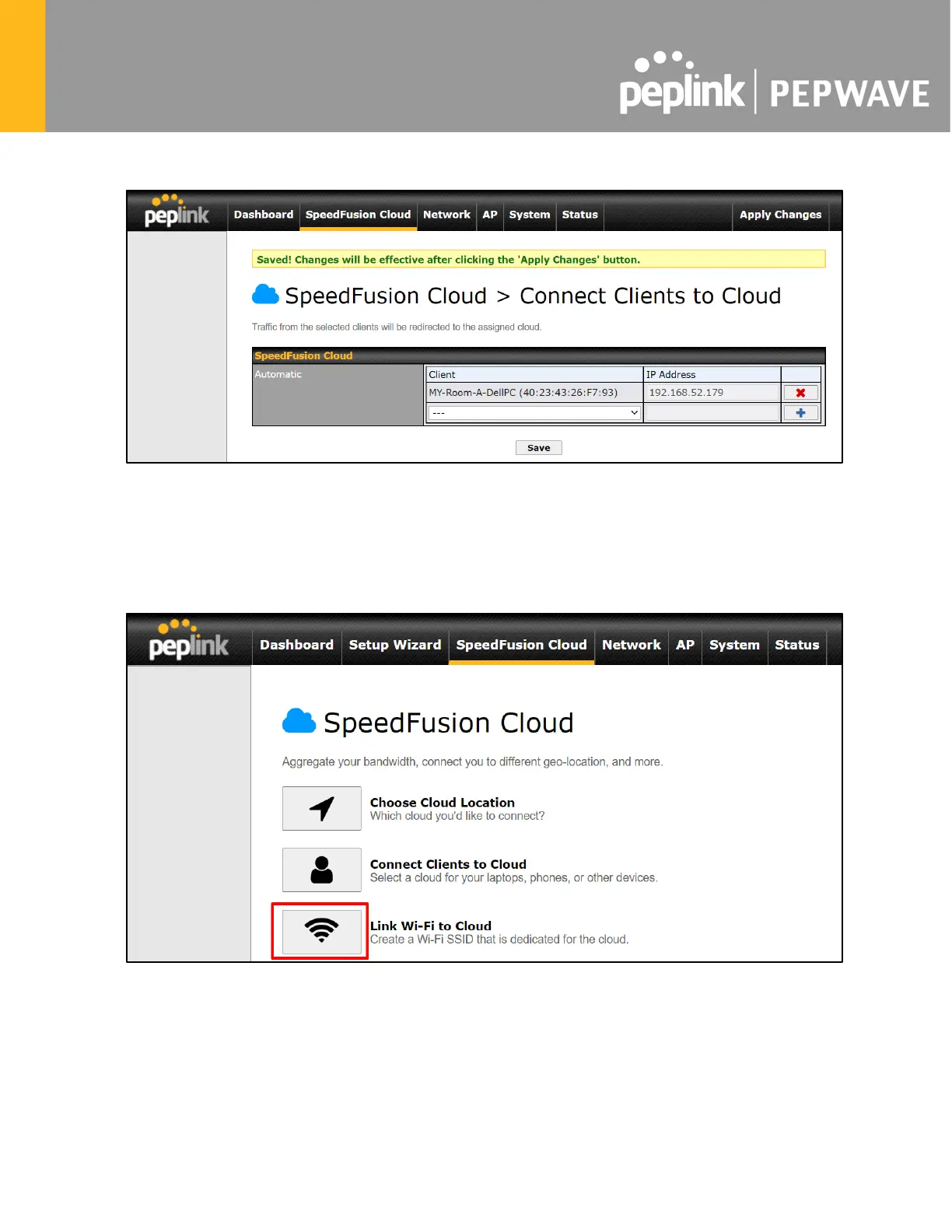 SpeedFusion Cloud provides a convenient way to route the Wi-Fi client to the cloud from