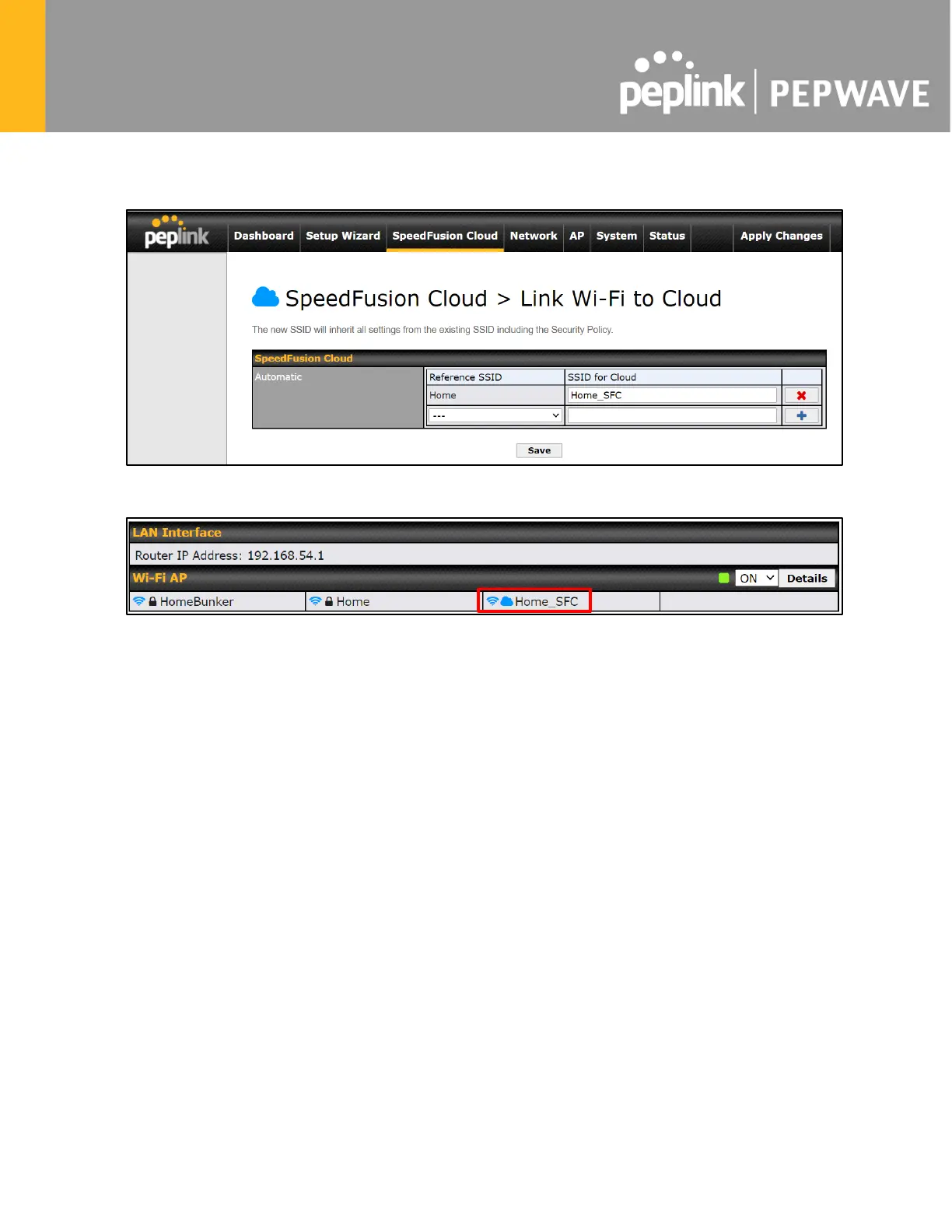 SpeedFusion Cloud SSID will be shown on Dashboard.