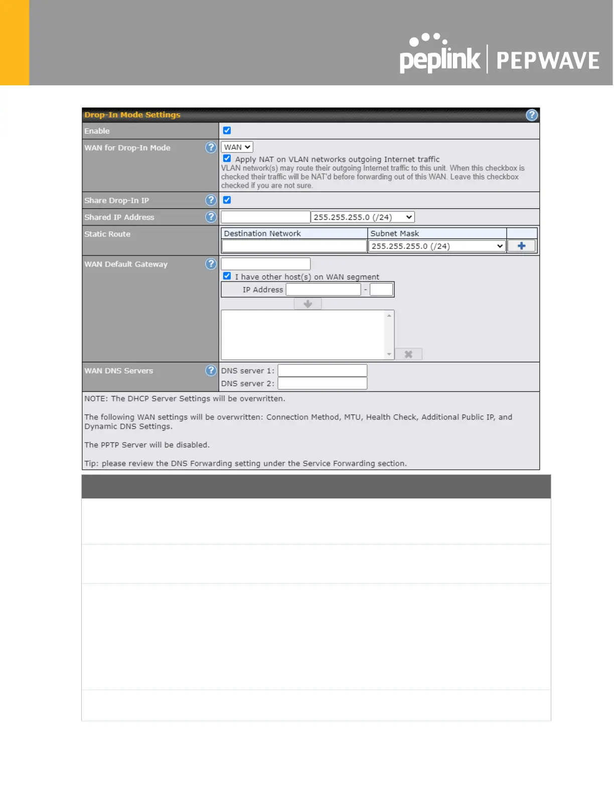 in mode eases the installation of the Pepwave MAX on a live network between