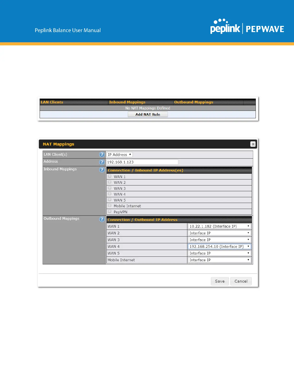 ThePeplinkBalanceallowstheIPaddressmappingofallinboundandoutboundNATedtraffictoand