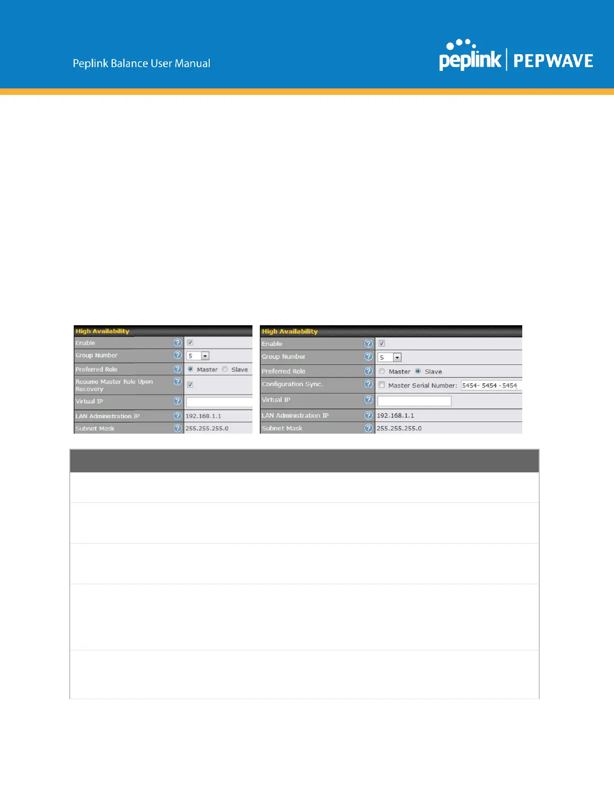 ● InanHAconfiguration,thetwoPeplinkBalanceunitscommunicatewitheachotherusingVRRP