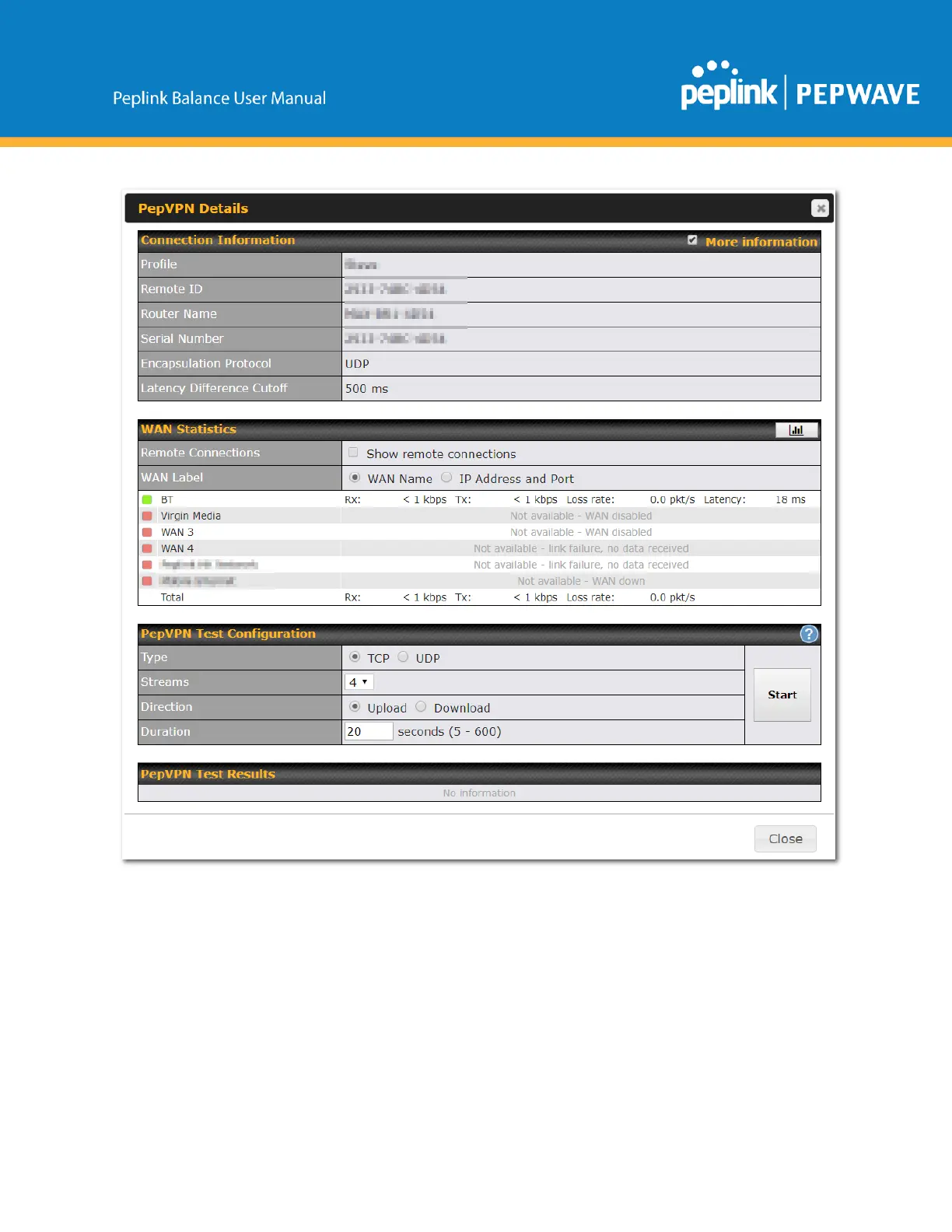 TheconnectioninformationshowsthedetailsoftheselectedPepVPNprofile,consistingoftheProfile