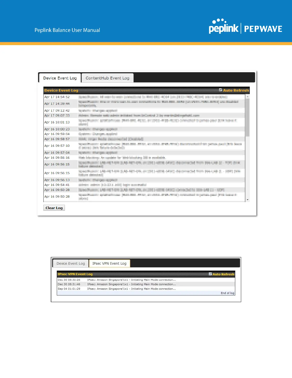 ThelogsectiondisplaysalistofeventsthathavetakenplaceonthePeplinkBalance