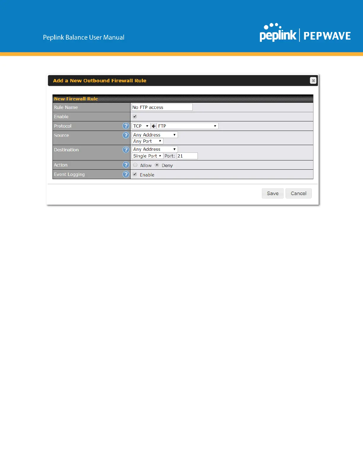 Afterthefieldshavebeenenteredasinthescreenshot,clickSavetoaddtherule.Click