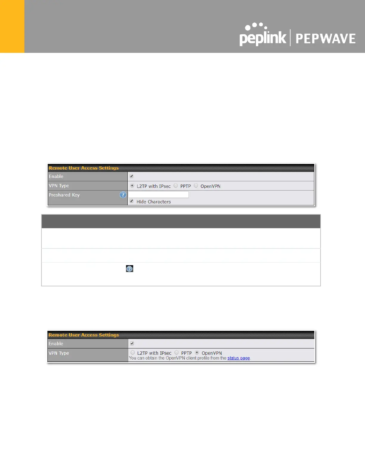 IPsec or PPTP. To configure this feature, navigate to Network > Remote User Access and