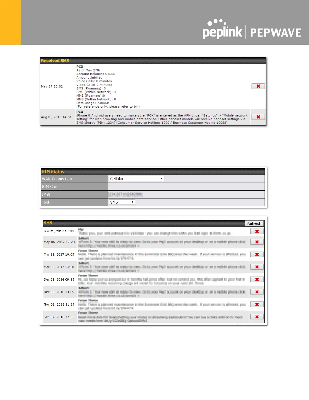 The SMS option allows you to read SMS (text) messages that have been sent to the SIM in your