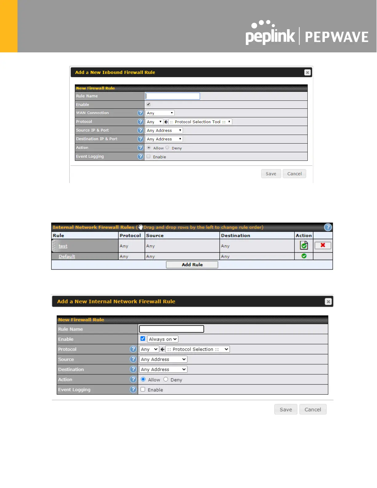 Internal Network firewall settings are located at Advanced>Firewall>Access Rules>Internal