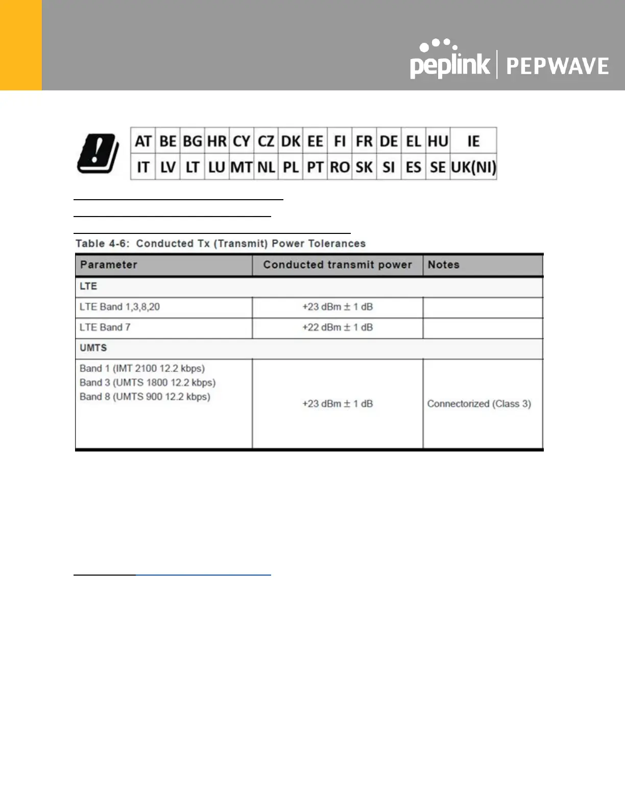 WWAN : Refer 3GPP TS 36.521 -1 ( UE Power class )