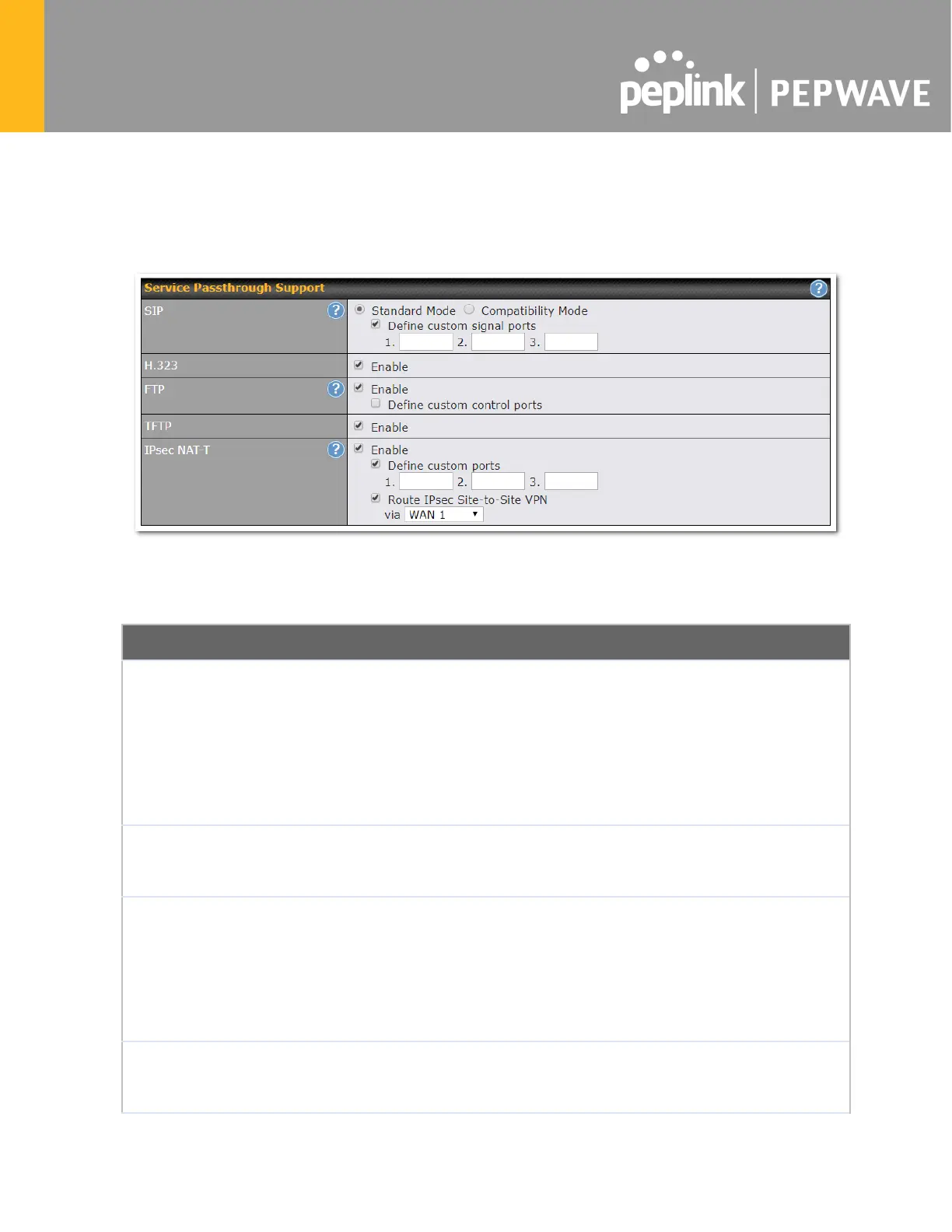 Some Internet services need to be specially handled in a multi-WAN environment. Pepwave