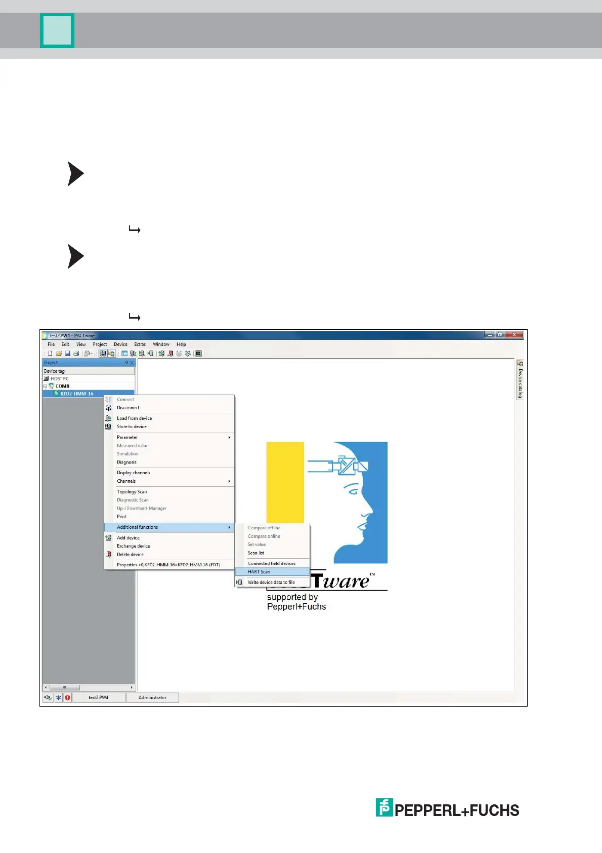 Starting the HART Scan Function via Context Menu