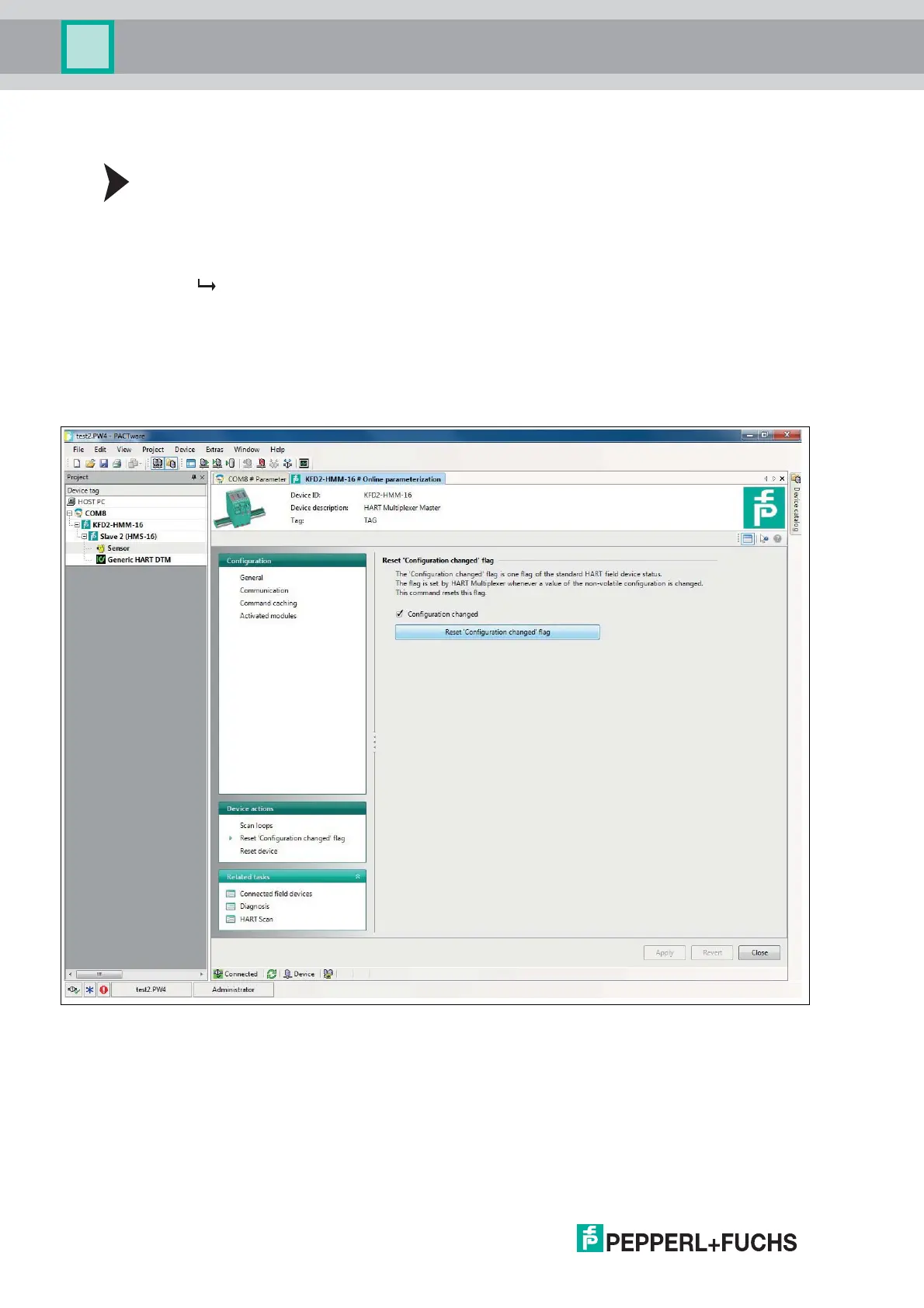 Device actions > Reset "Configuration changed" flag menu.