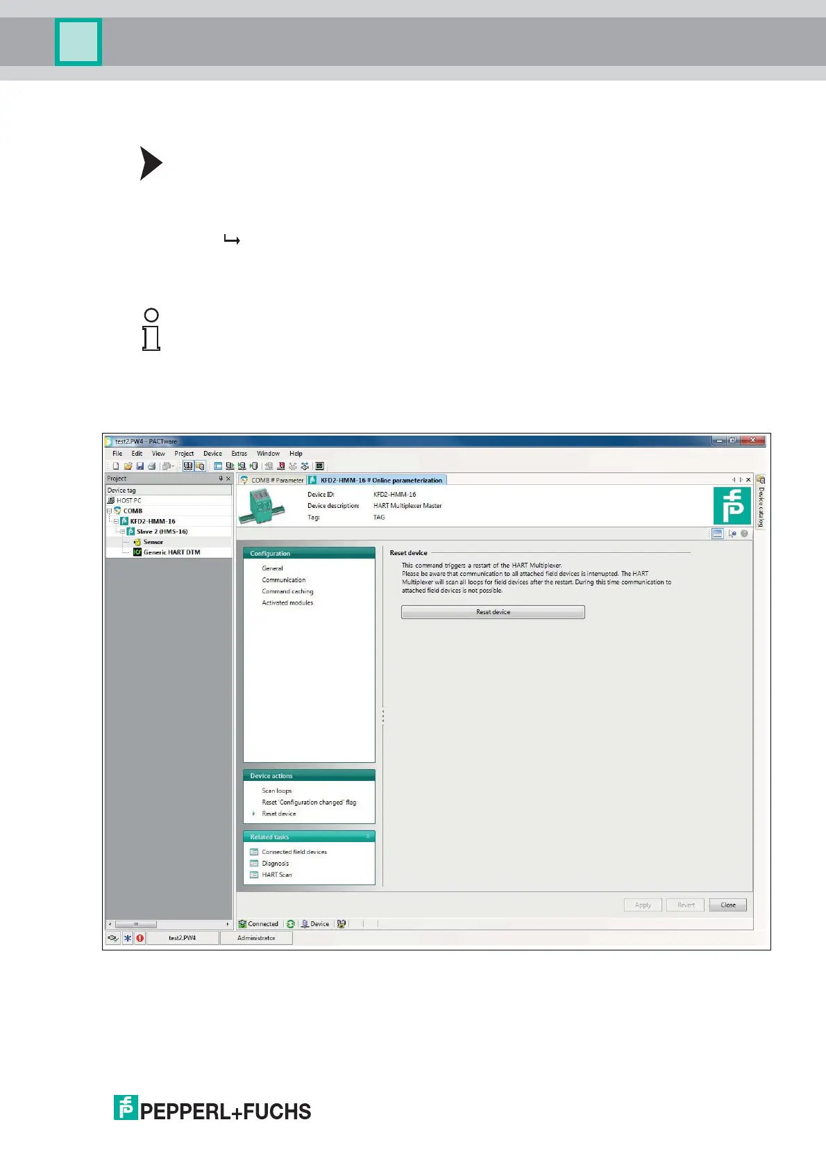 communication to all connected field devices is initially interrupted. After the restart, all