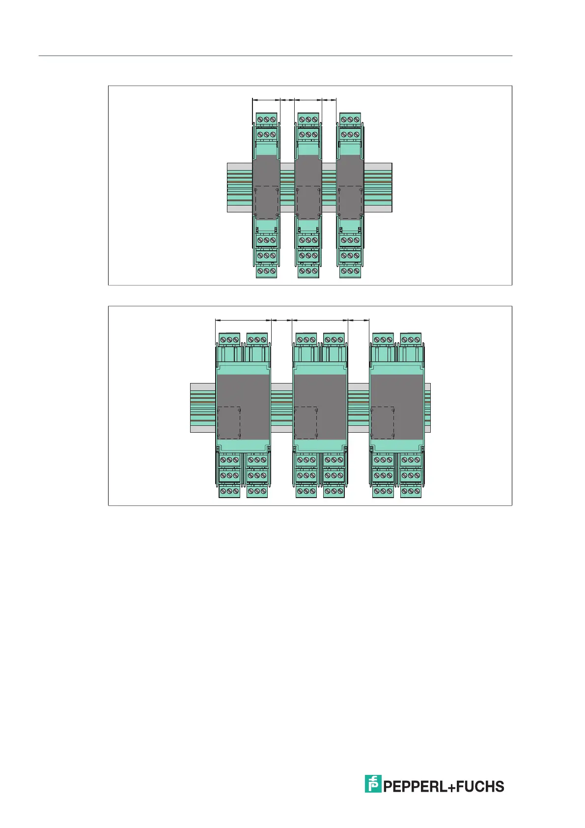Figure 3.6 Horizontal mounting of KF devices with 40 mm housing width (single device mounting)