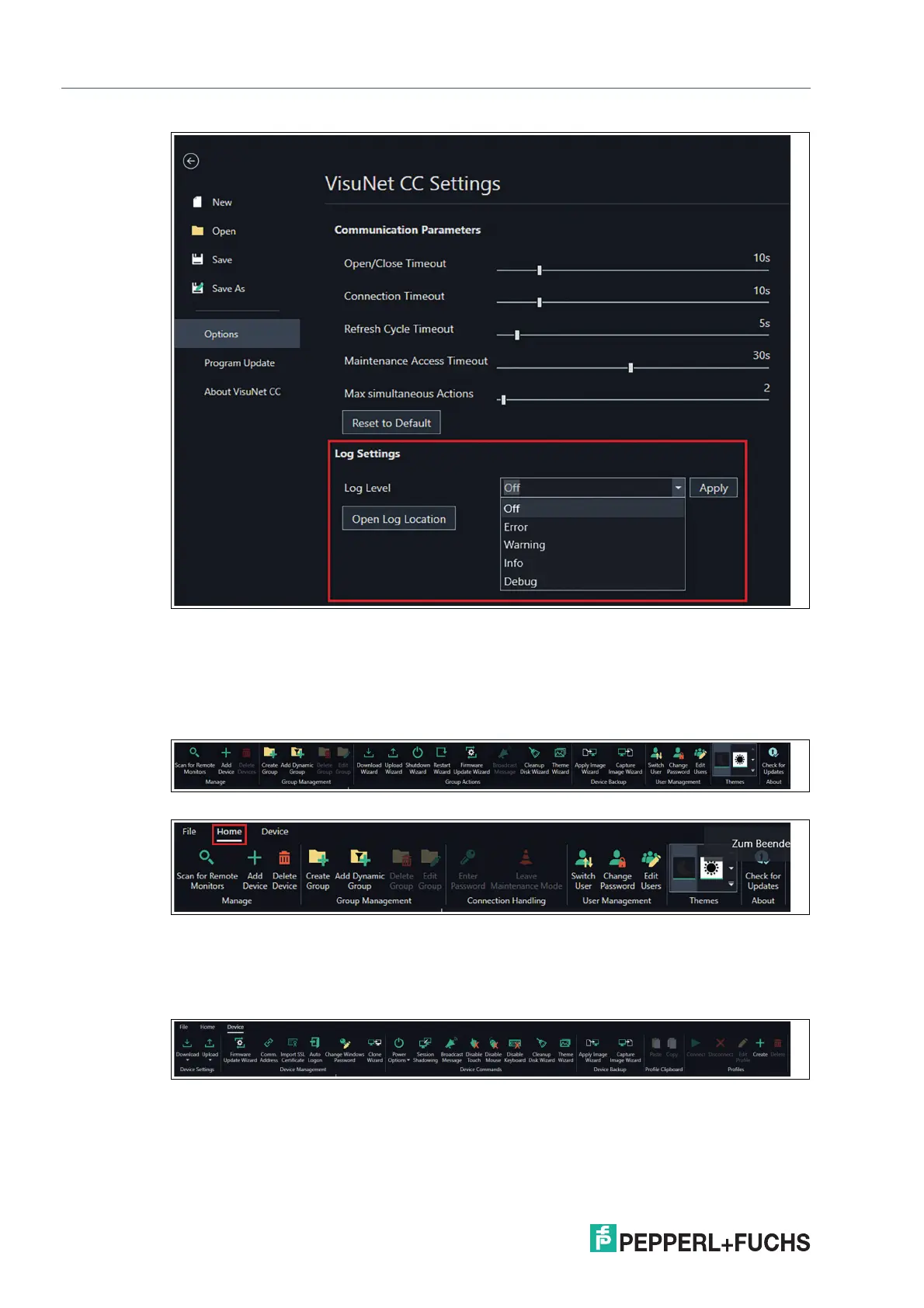 There are two different “Home” ribbon toolbars, depending on if a device is selected or the