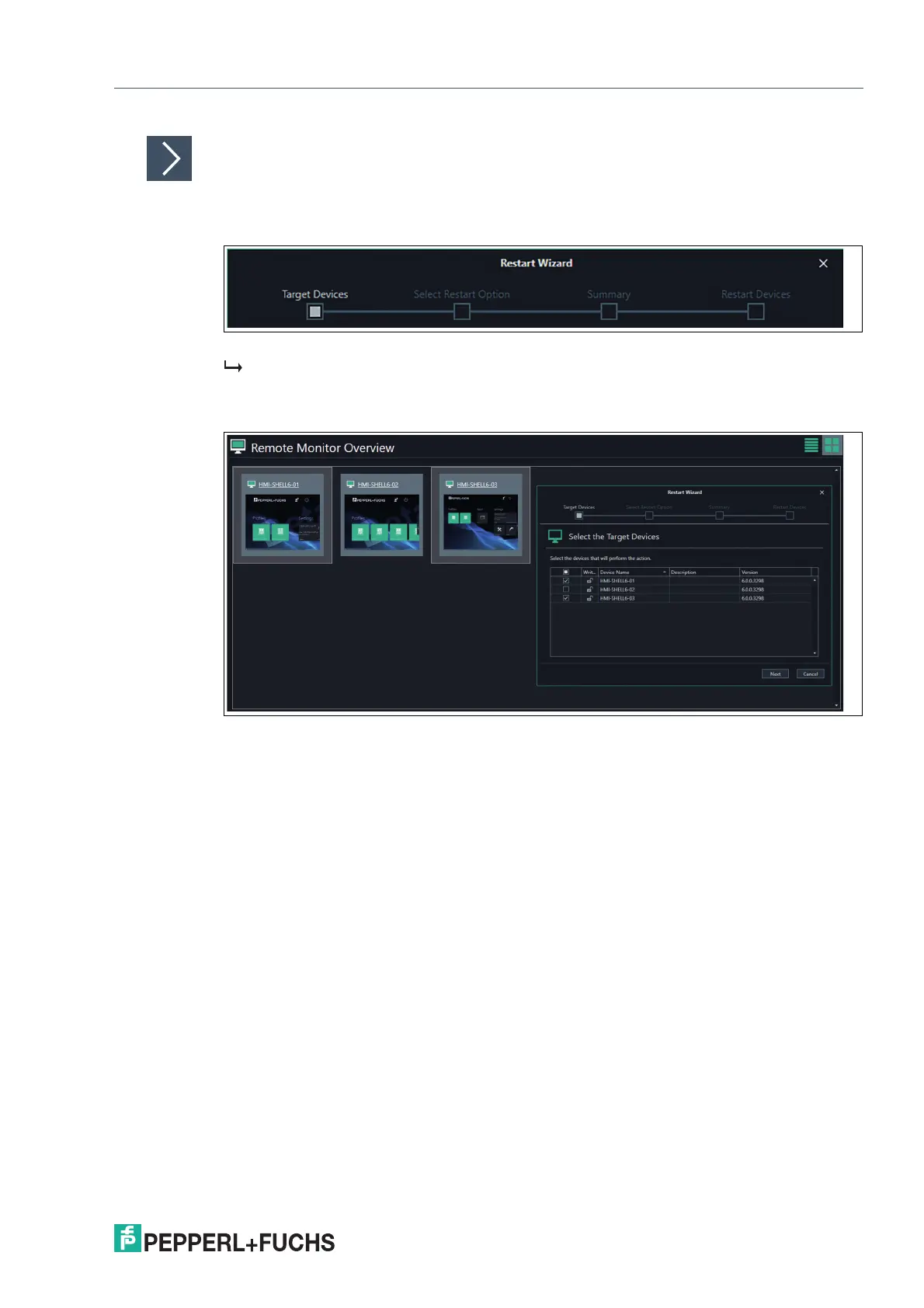 Figure 6.8 Restart Wizard: Target Devices
