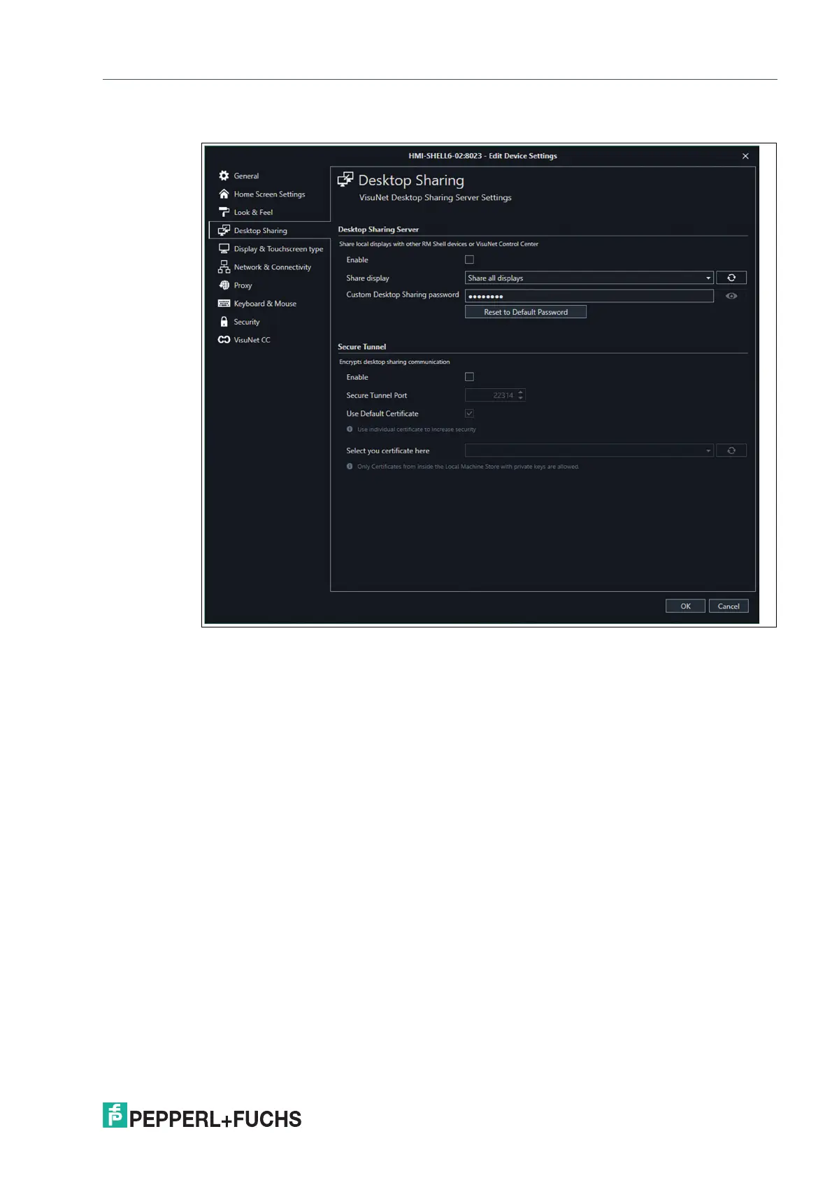 The VisuNet Desktop Sharing Server is per default disabled.