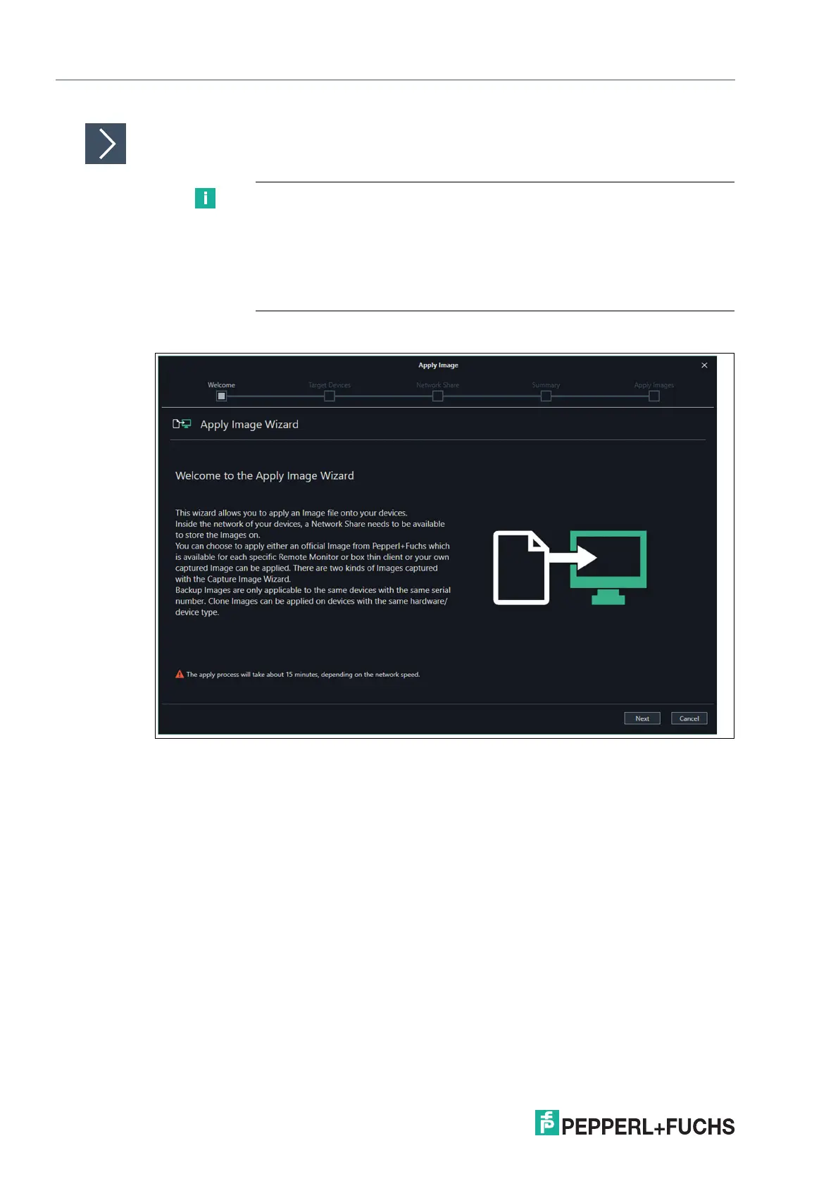 When applying a Pepperl+Fuchs image or a clone image you need to setup
