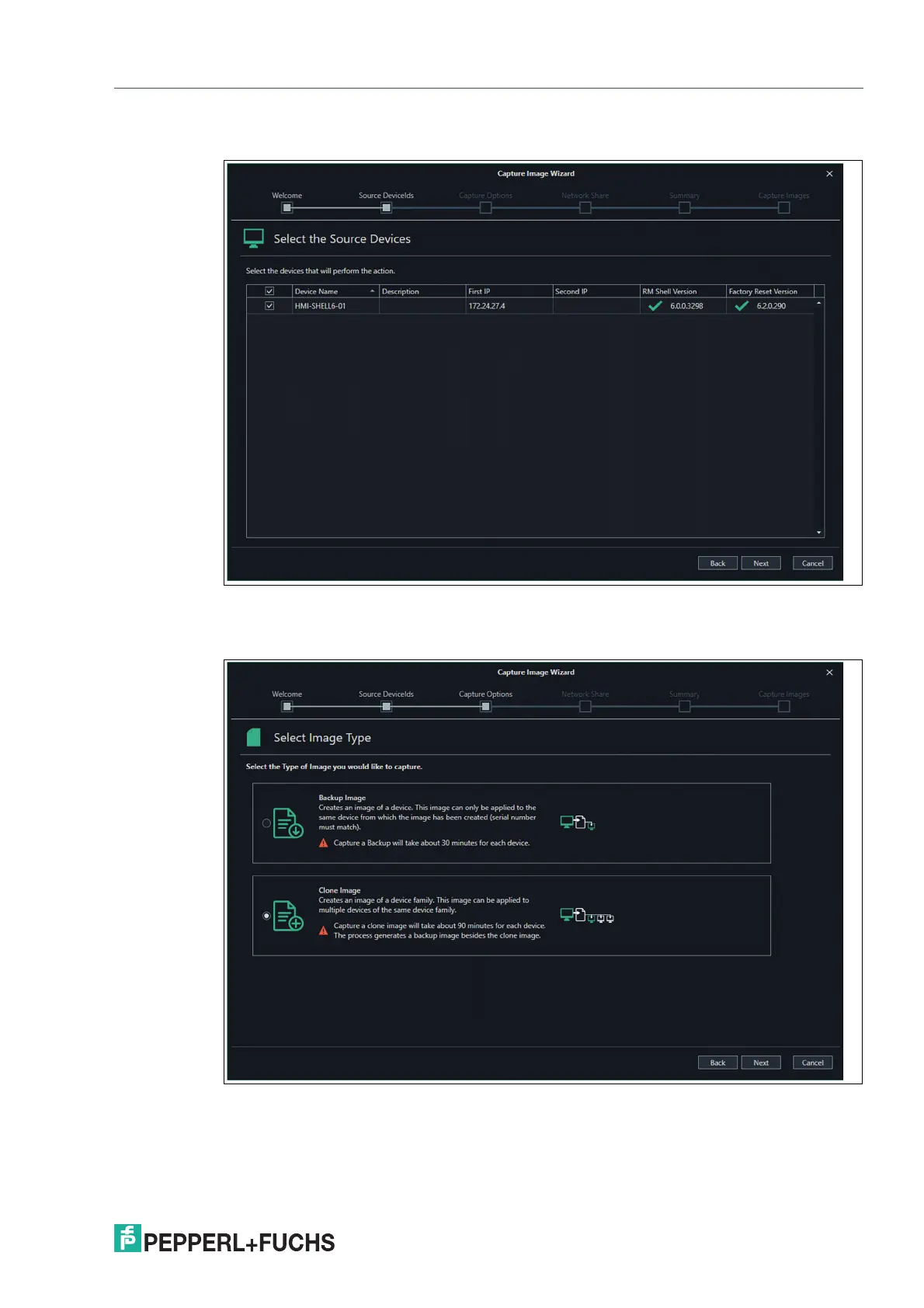 3. Select if you would like to either capture a Backup Image or a Clone Image. For further