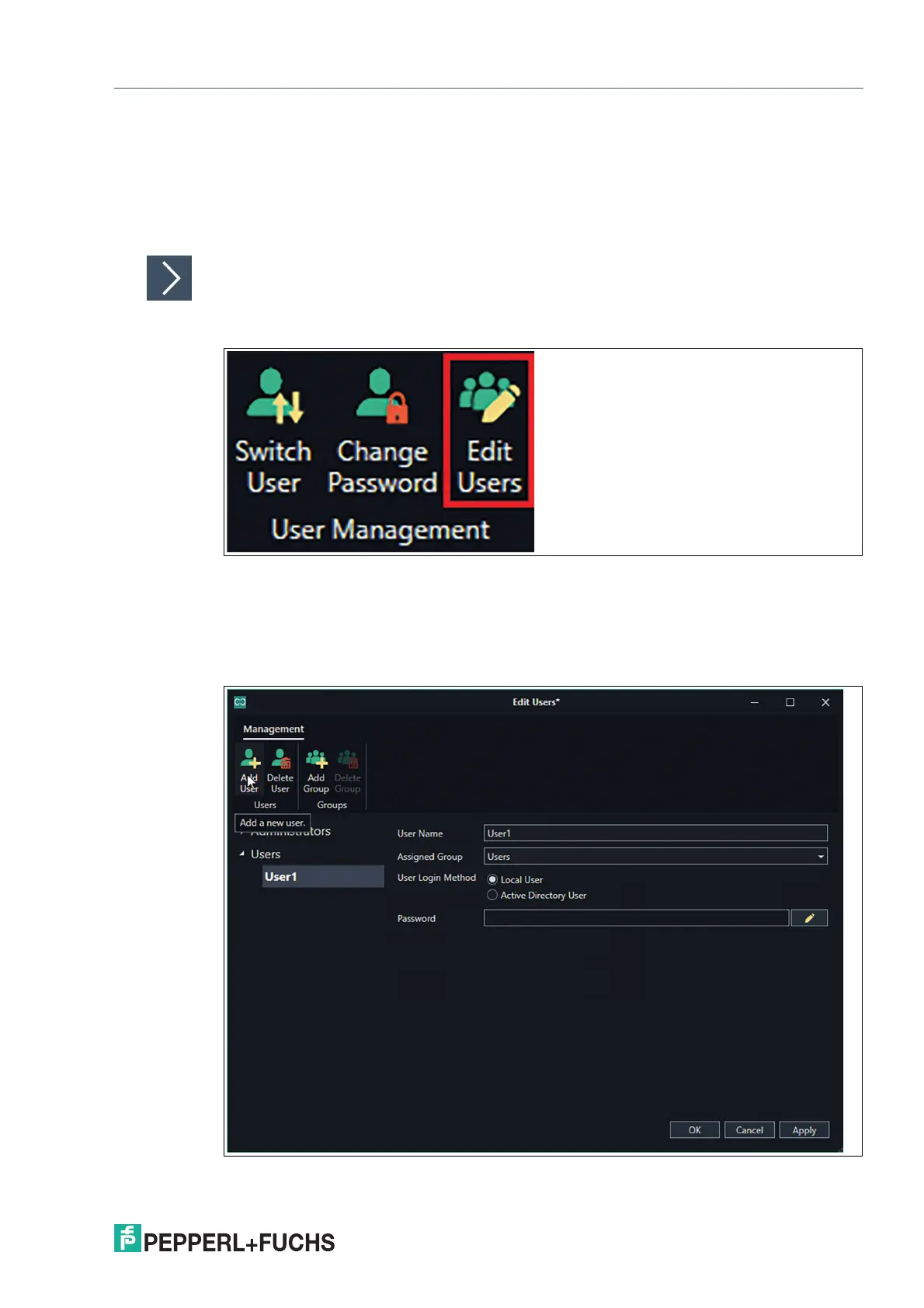2. Click the “Add User” icon on the ribbon tool bar of the “Edit Users” window.
