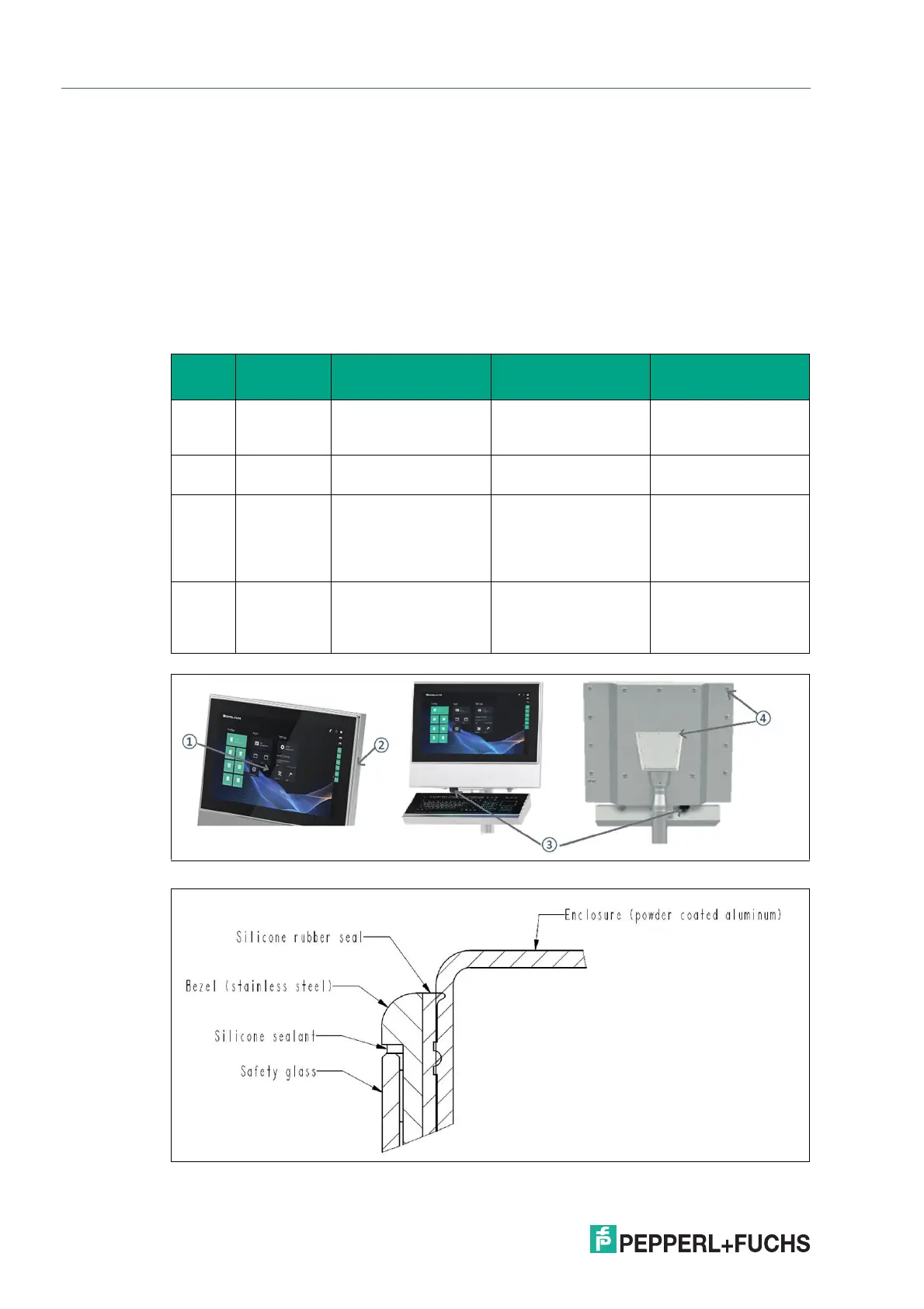 • Stainless steel 1.4301 (AISI 304) (Display bezel and System Housing options H1, P1)