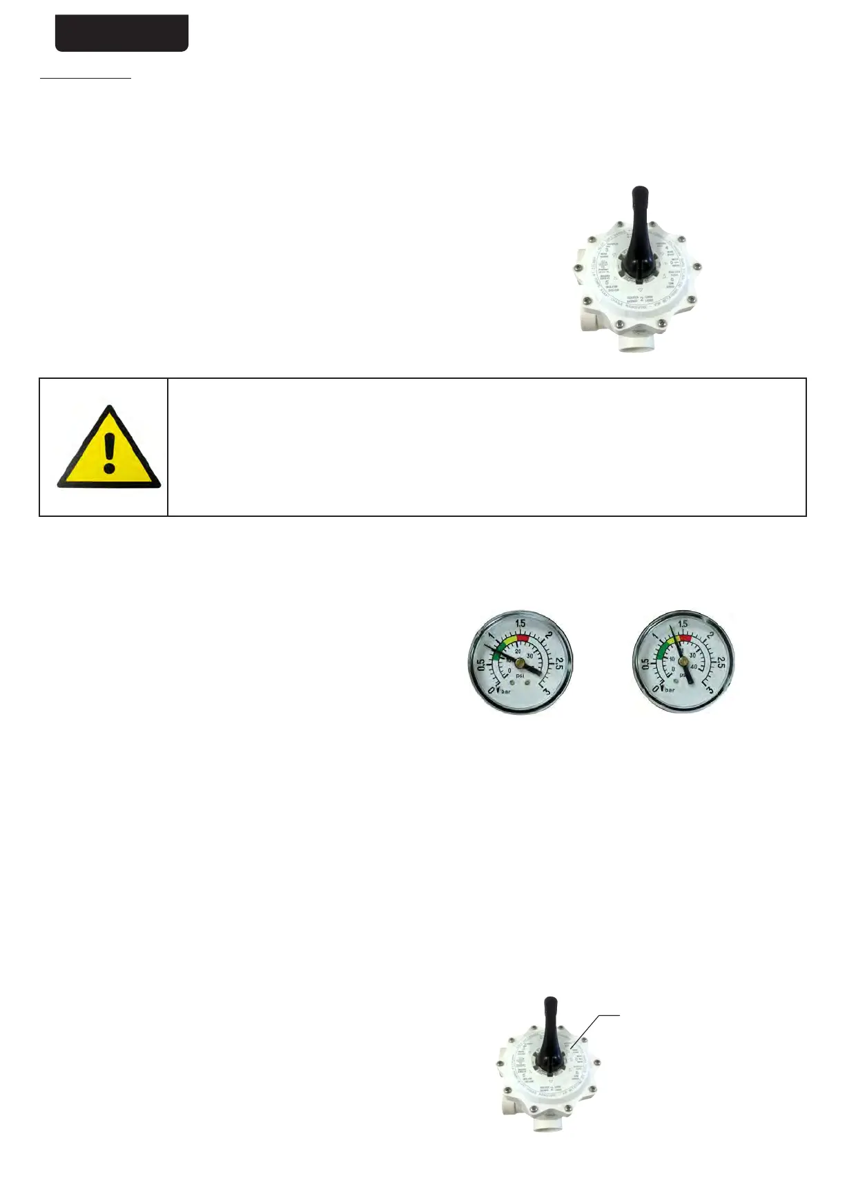 These functions take place through a different setting of the 6-way valve connected to the filter (supplied with the filter).