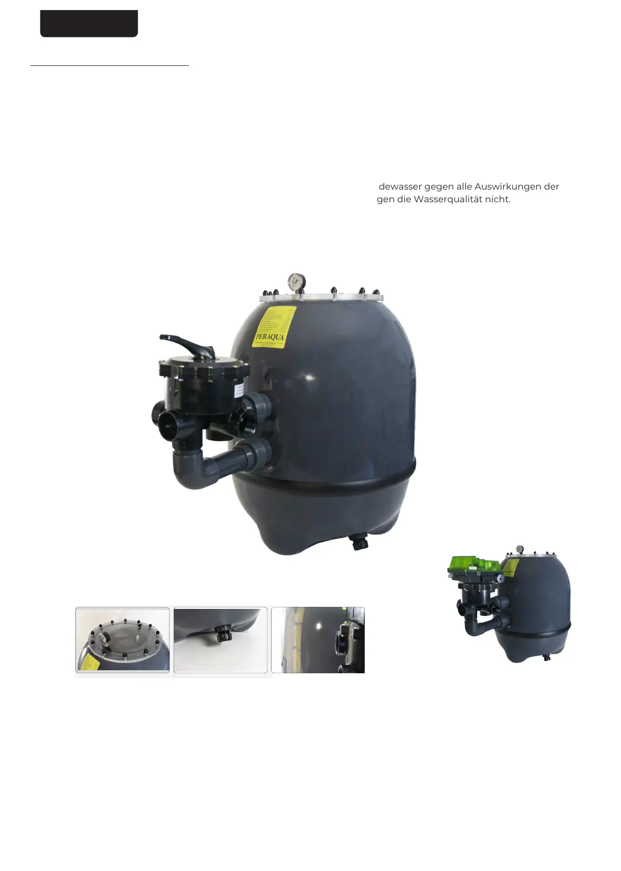 Die Komponenten, die den Filter ergänzen, sind für den Kontakt mit dem Badewasser gegen alle Auswirkungen der