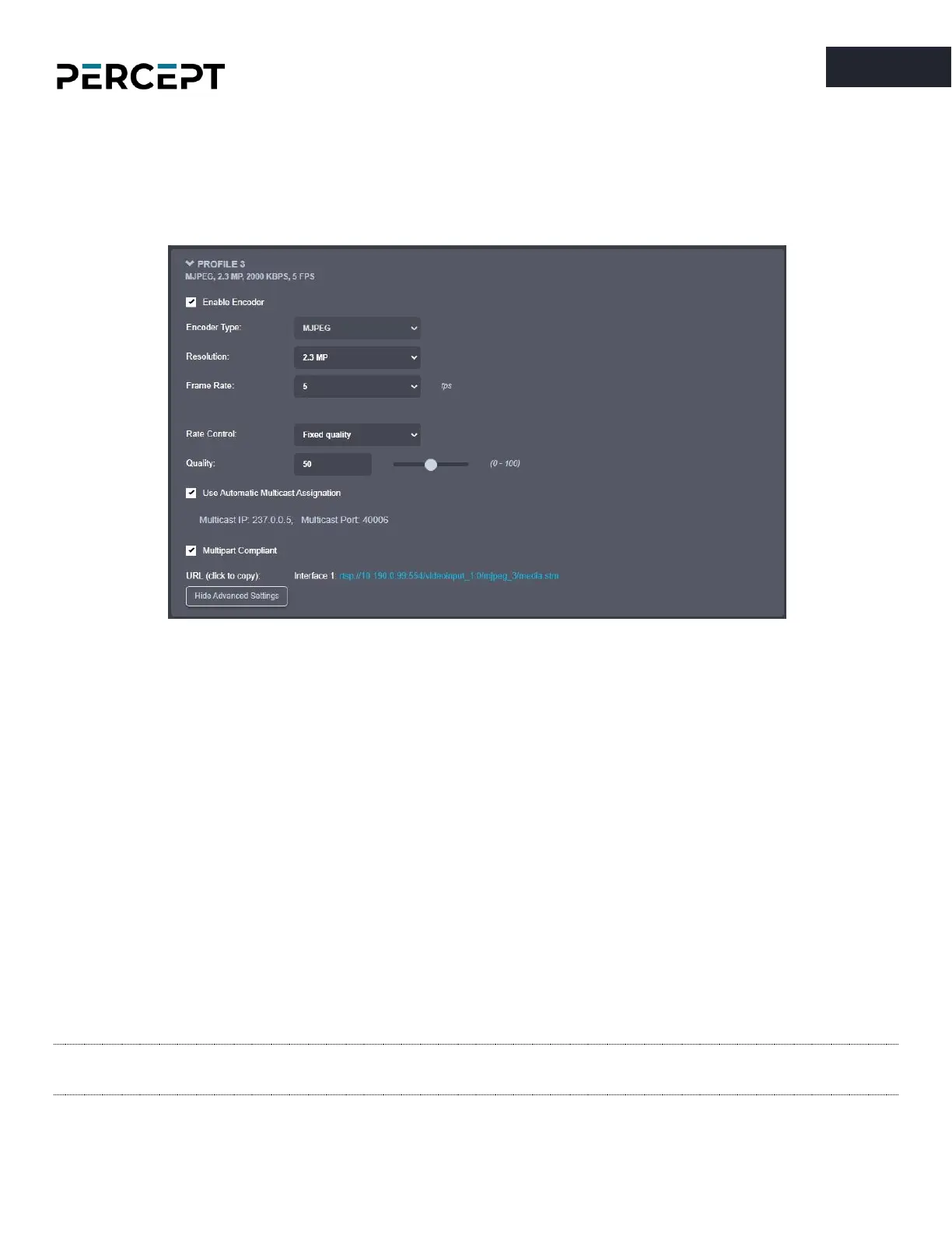 – displays the URL that can be used for direct streaming from this specific profile.