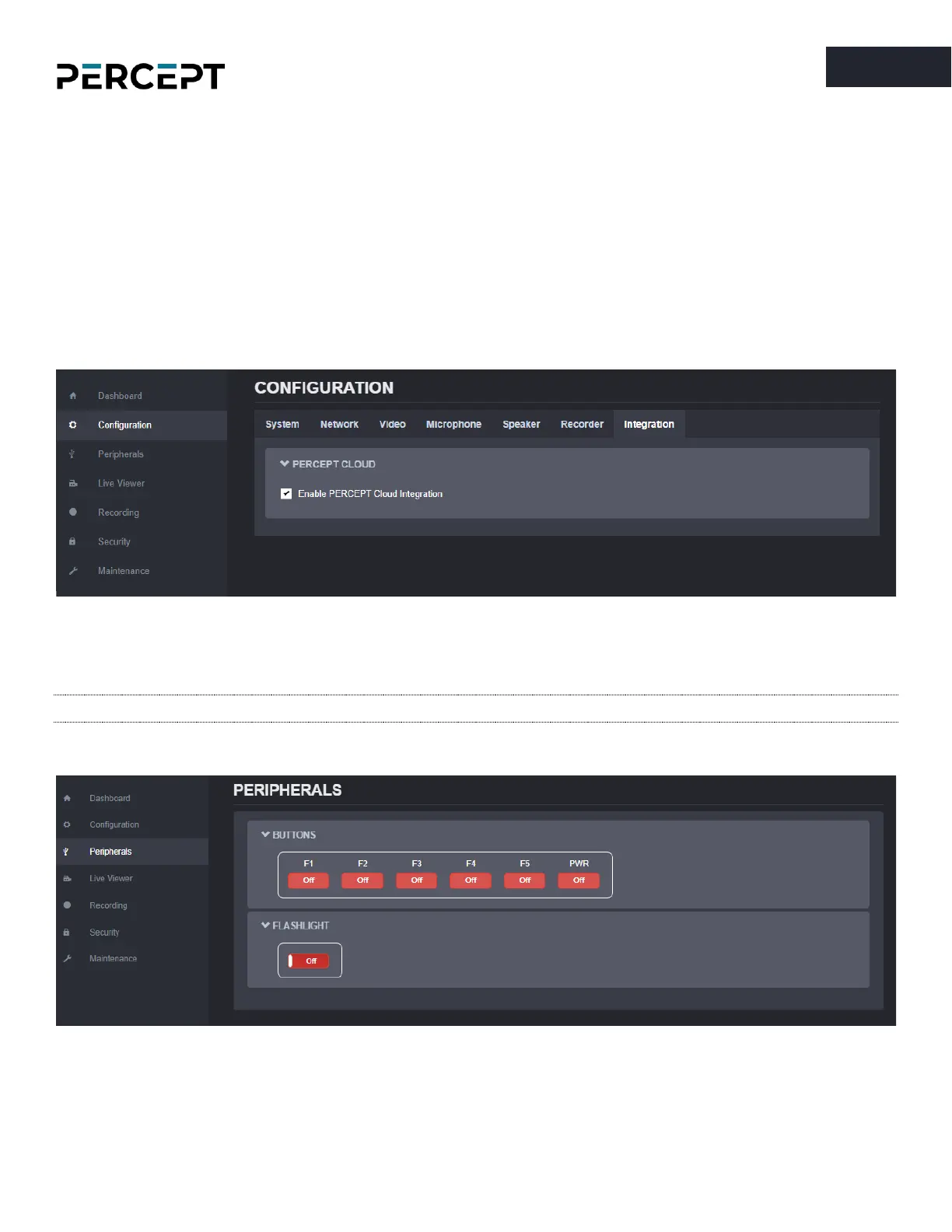 Note: Enabling the integration to PERCEPT Cloud will change the microphone from stereo to mono.