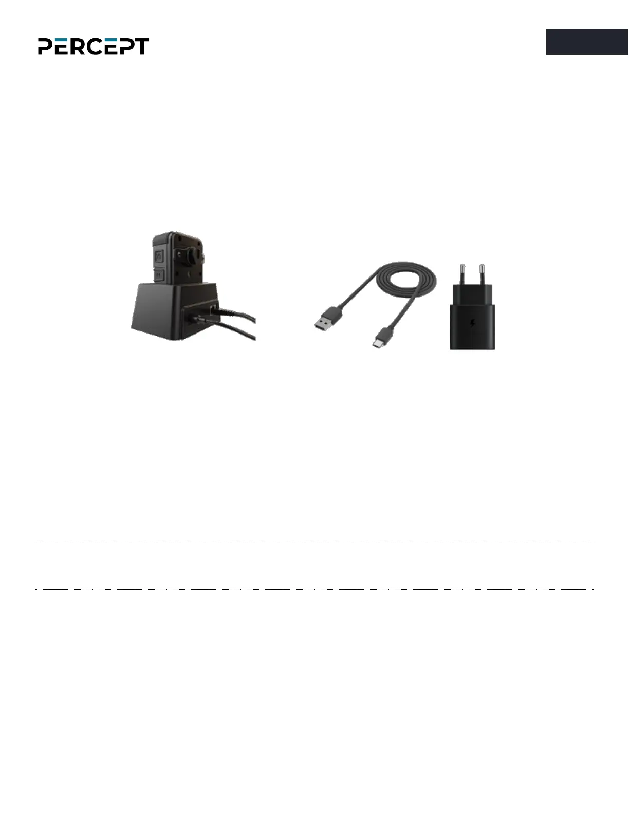 To charge the PERCEPT Body Camera, use one of the two following options: