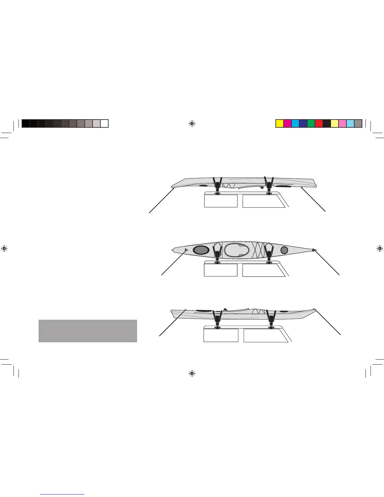 kayak. It should be lashed down at each crossbar, as