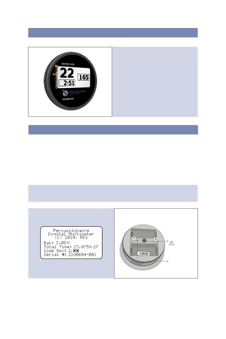 revision, battery voltage, total usage time and serial number for 15 seconds. This Start-