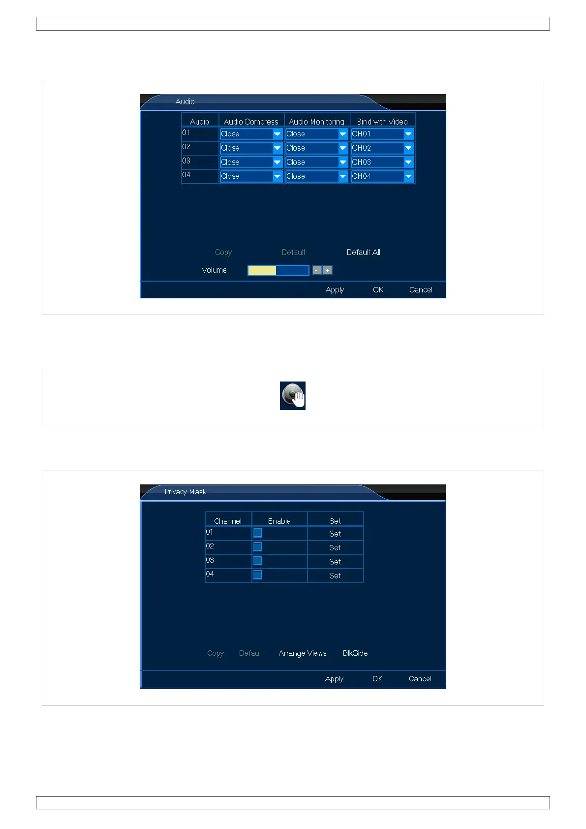 Im Menü Audio können Sie alle allgemeinen Audio-Einstellungen vornehmen. Ablauf: