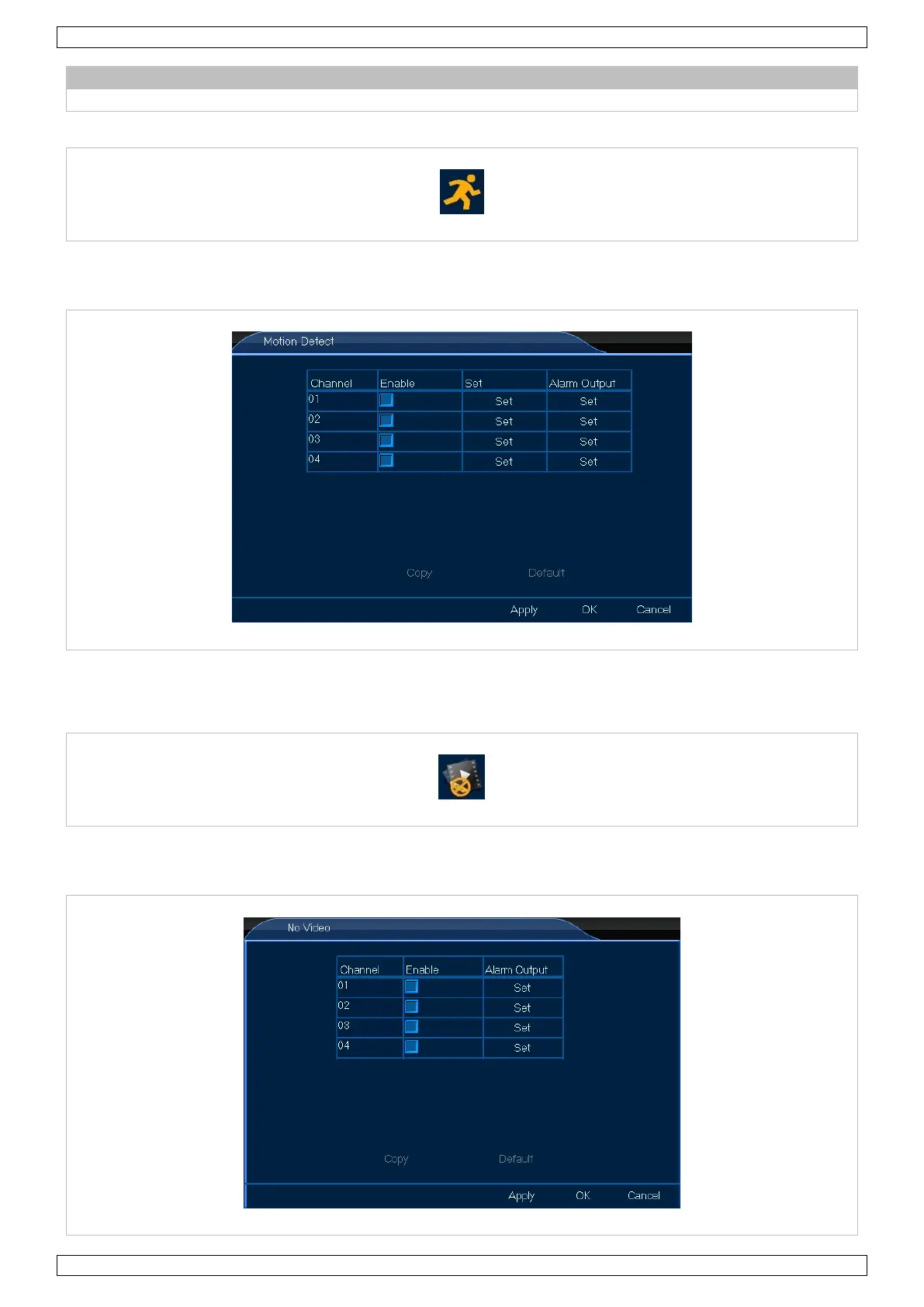 Im Menü Kein Video können Sie den Alarmausgang einstellen. Ablauf:
