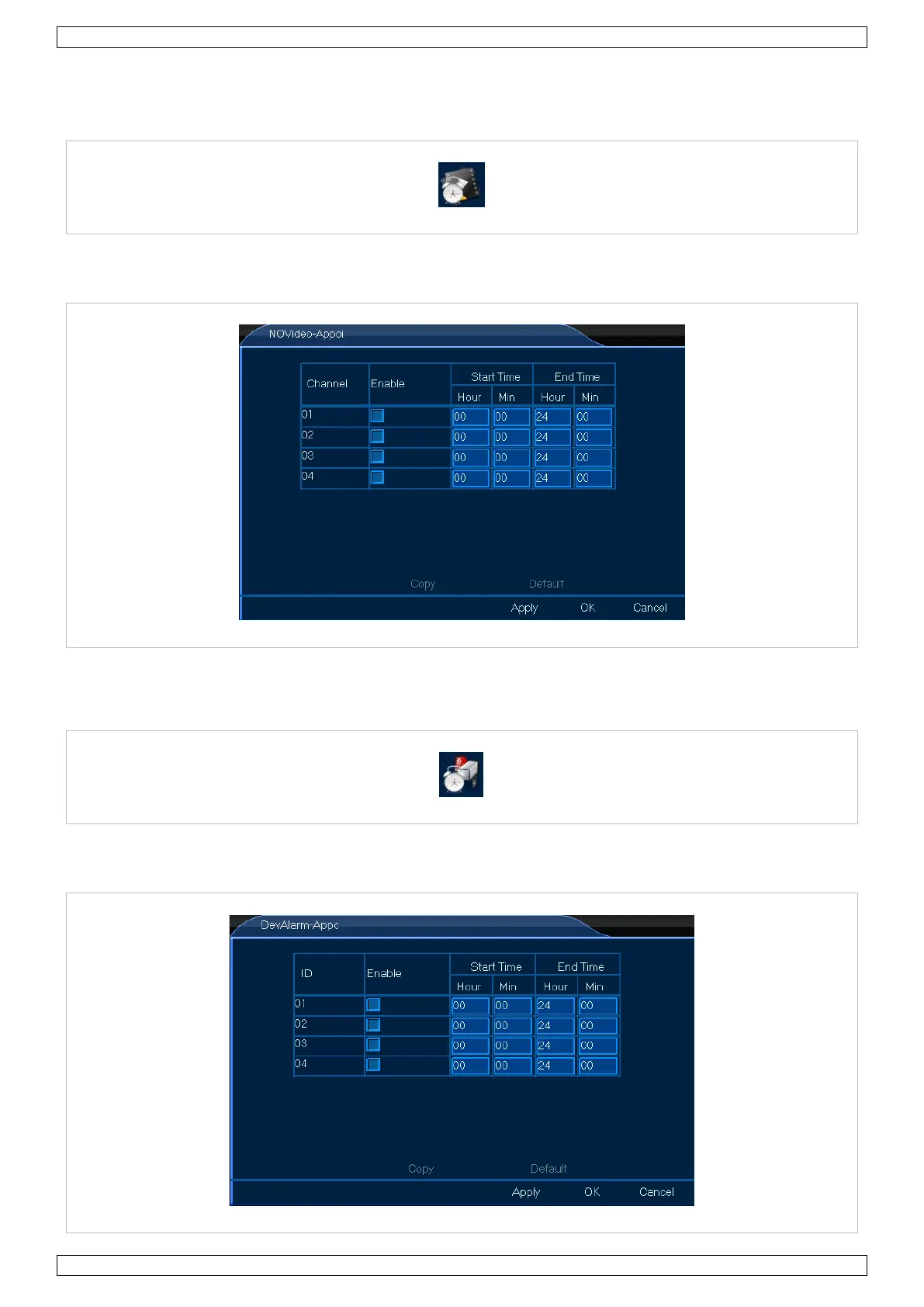 Im Menü Kein Video bestimmen können Sie den Alarm-Aus-Plan einstellen. Ablauf: