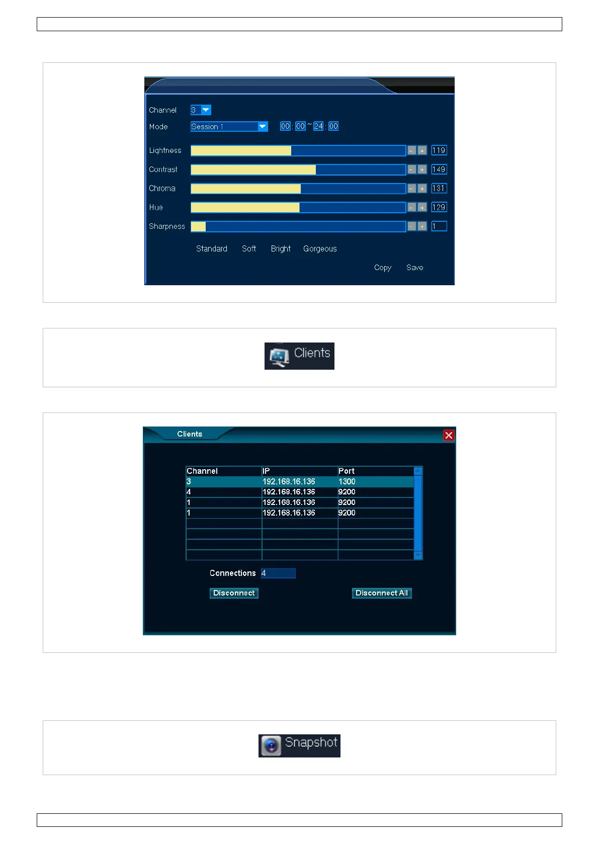 A função Clientes lista todos os servidores remotos ligados ao DVR.