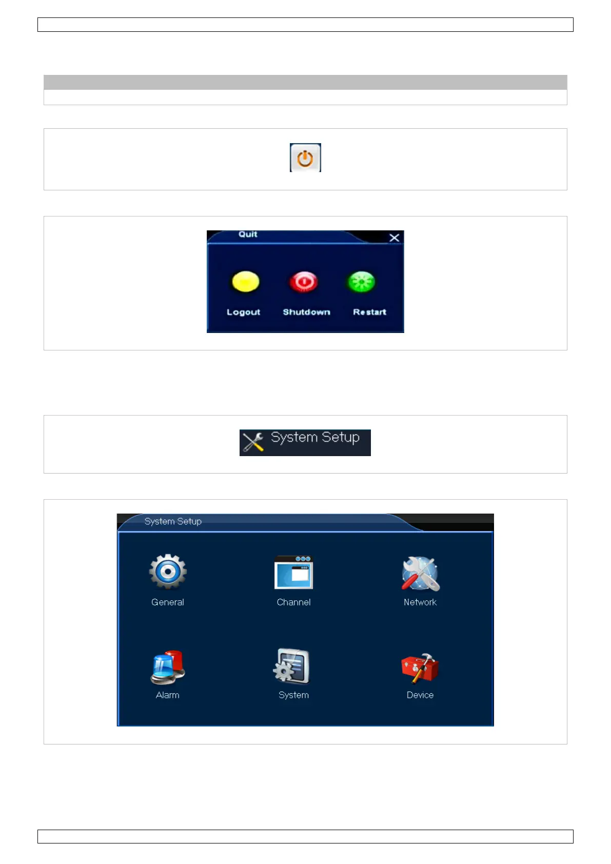 A função Sair permite-lhe sair, desligar ou reiniciar o DVR.