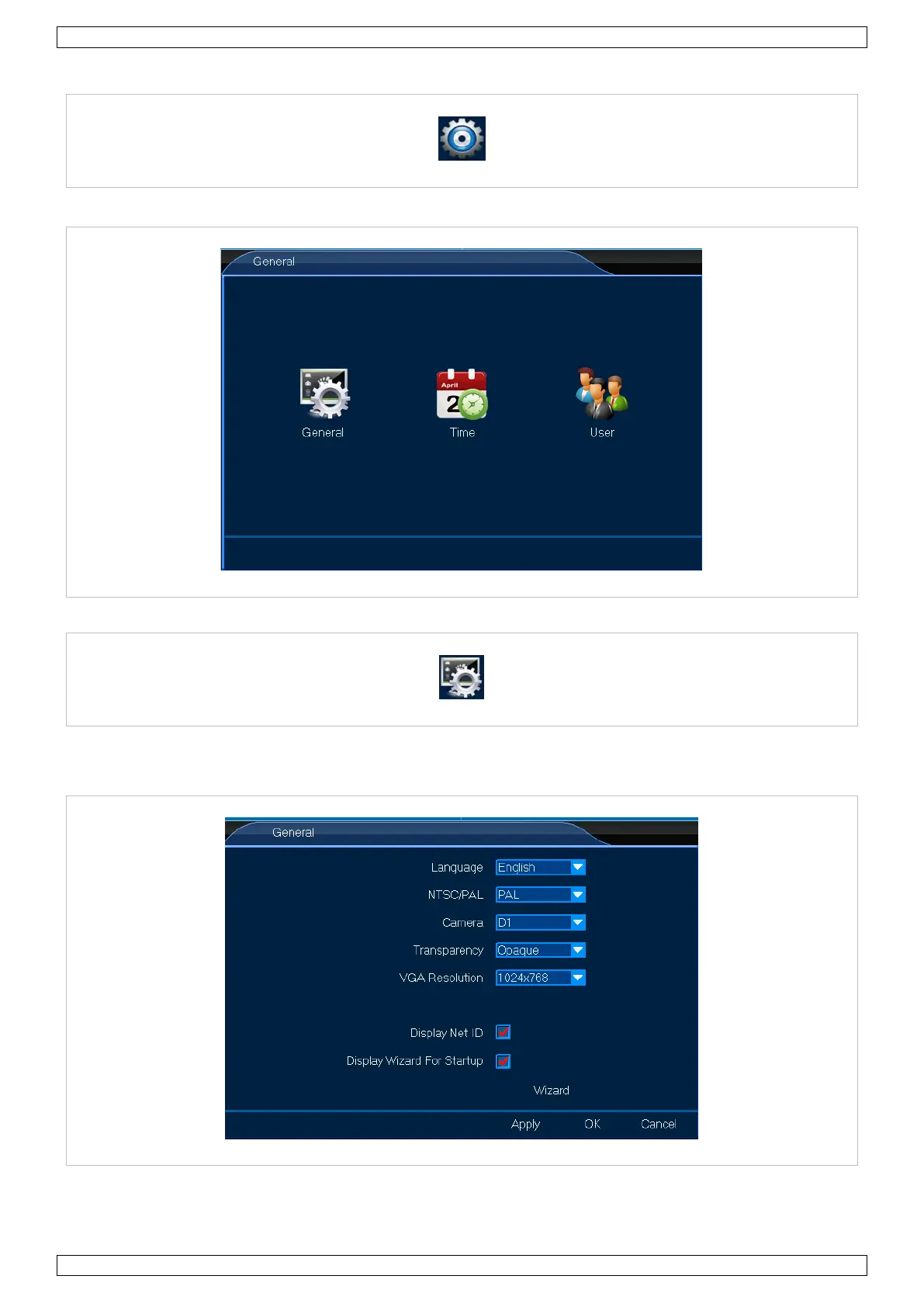 1. Faça clic com o botão esquerdo no ícone Geral para aceder ao menu.